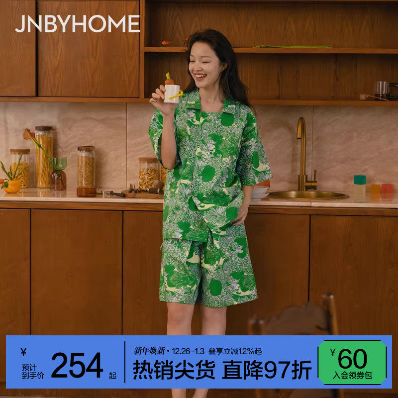 JNBYHOME江南布衣春夏睡衣女短袖印花家居服度假风情侣可外穿