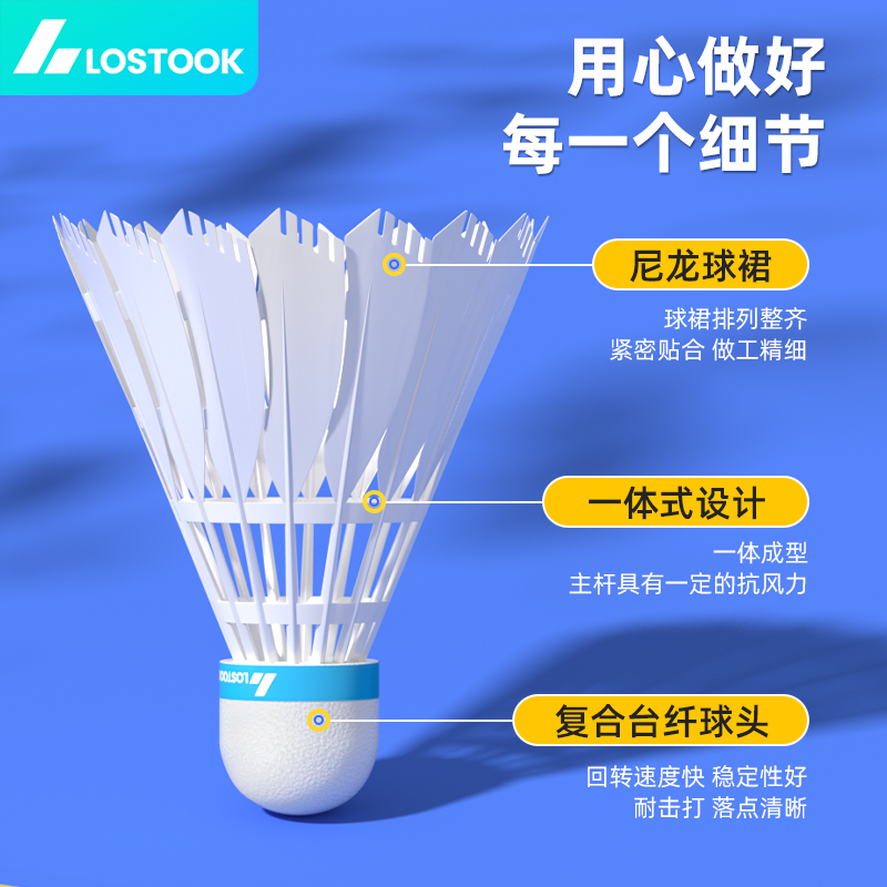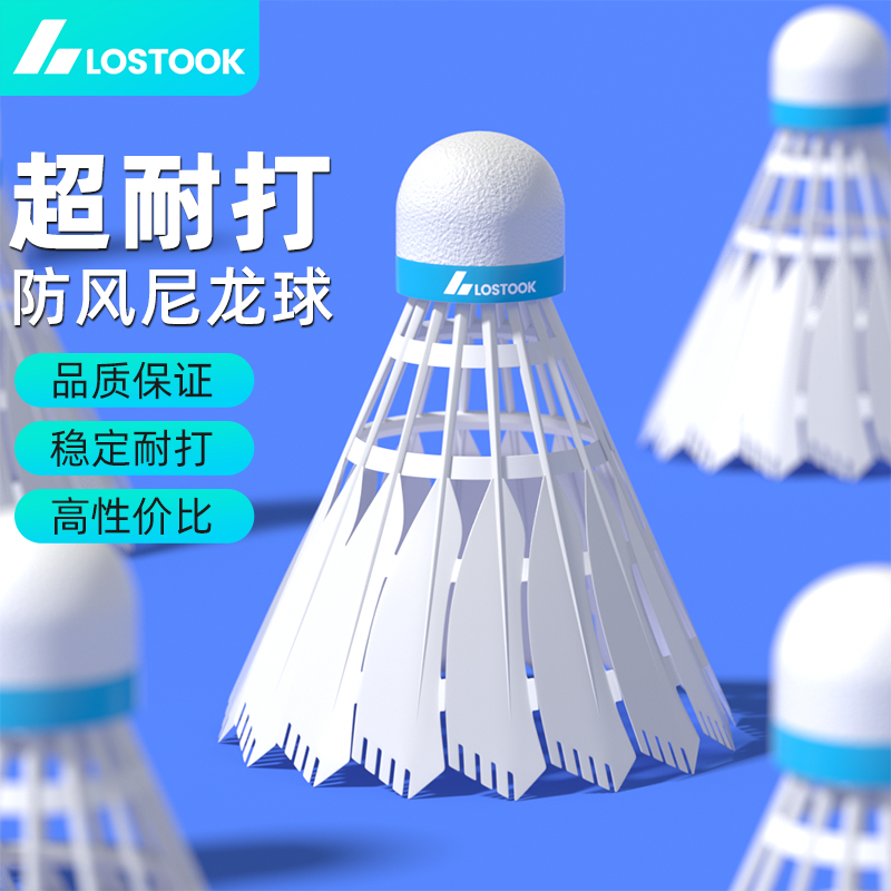 洛斯托克仿真尼龙羽毛球专业耐打12只装防风比赛训练室内室外用球