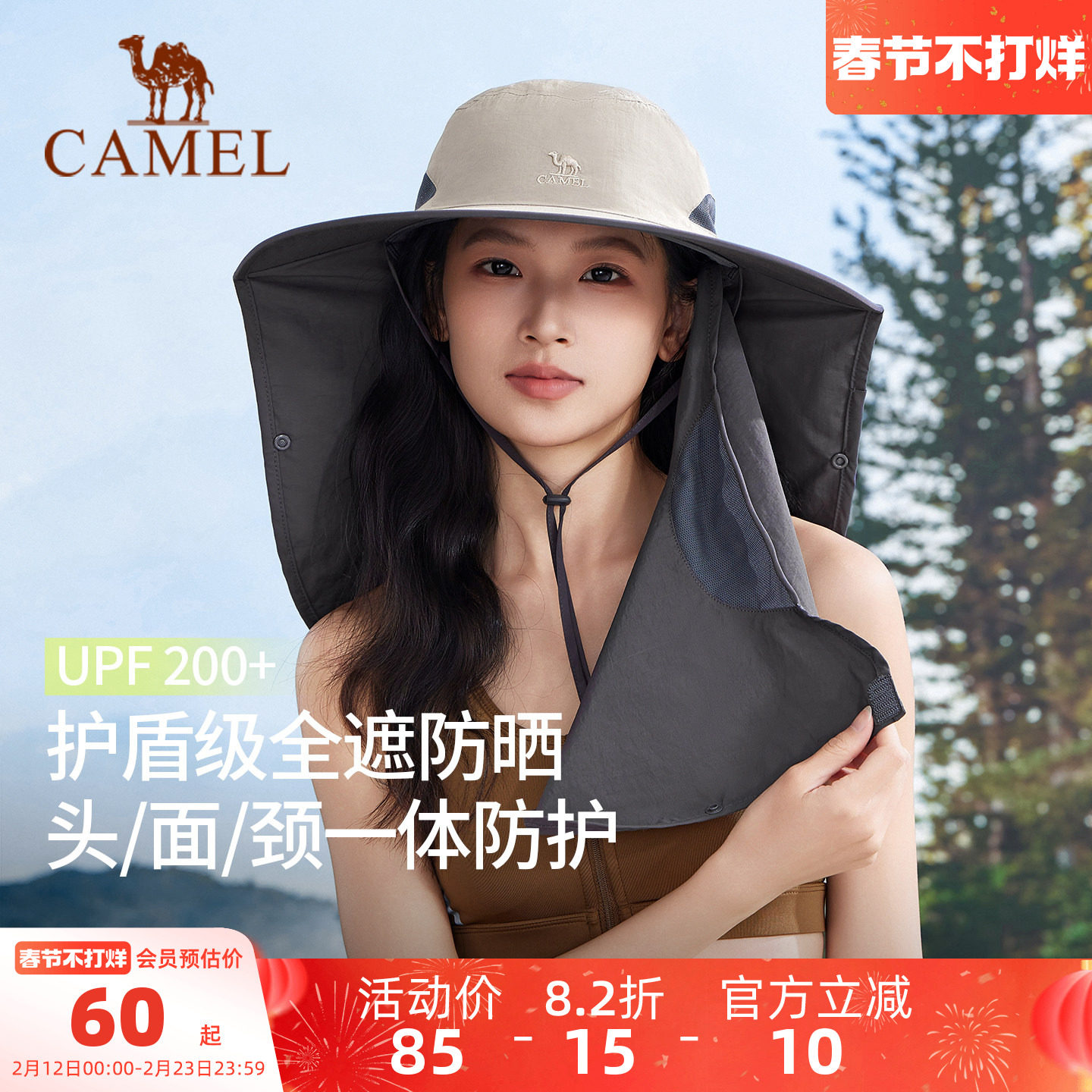 骆驼全方位防晒渔夫帽男户外钓鱼帽遮阳面罩护颈帽子一体登山帽女