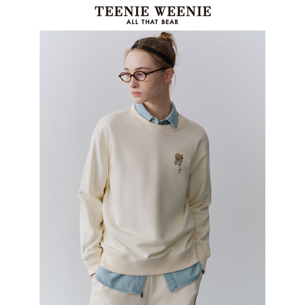 TeenieWeenie小熊奥莱女装秋季重磅针织圆领卫衣白色上衣