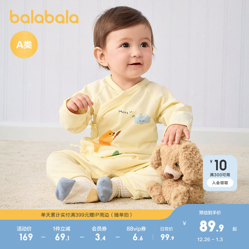 巴拉巴拉婴儿连体衣宝宝睡衣新生儿爬服哈衣2025新款两件装清新萌