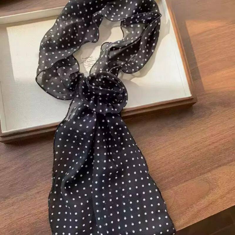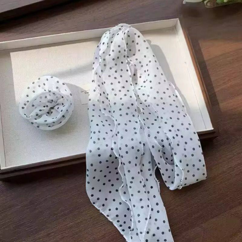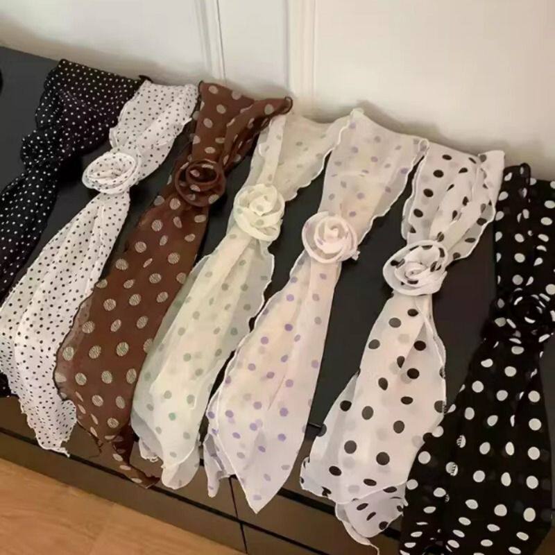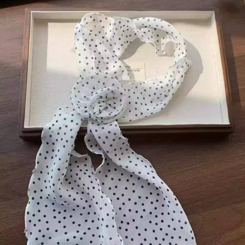 韩系波点玫瑰花丝巾女春夏季薄款高级感气质百搭系脖领巾围脖发带