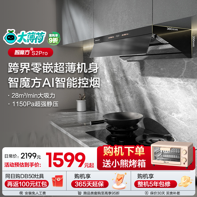 海信大薄荷系列顶侧双吸抽排家用厨房油烟机燃气灶一套餐装S2Pro