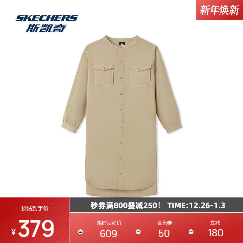 斯凯奇2025秋季女款运动连衣裙印花吸湿速干经典休闲时尚3A抗菌