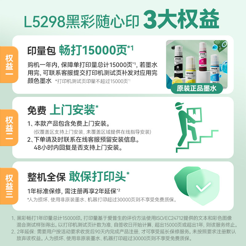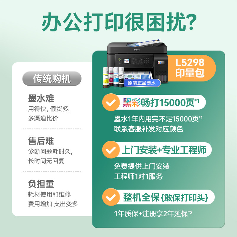 爱普生Epson L5298 连续扫描自动输稿器复印打印一体机彩色A4黑白传真机高速喷墨仓式商务原装连供多功能