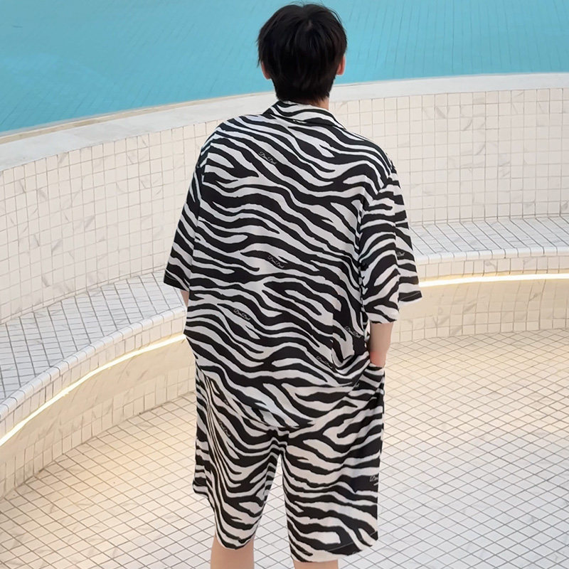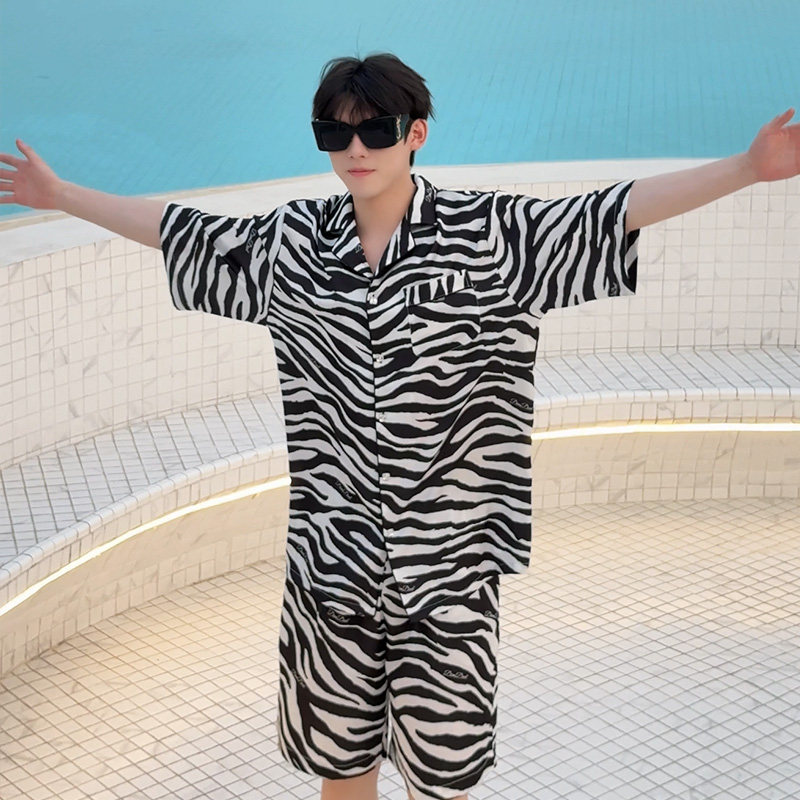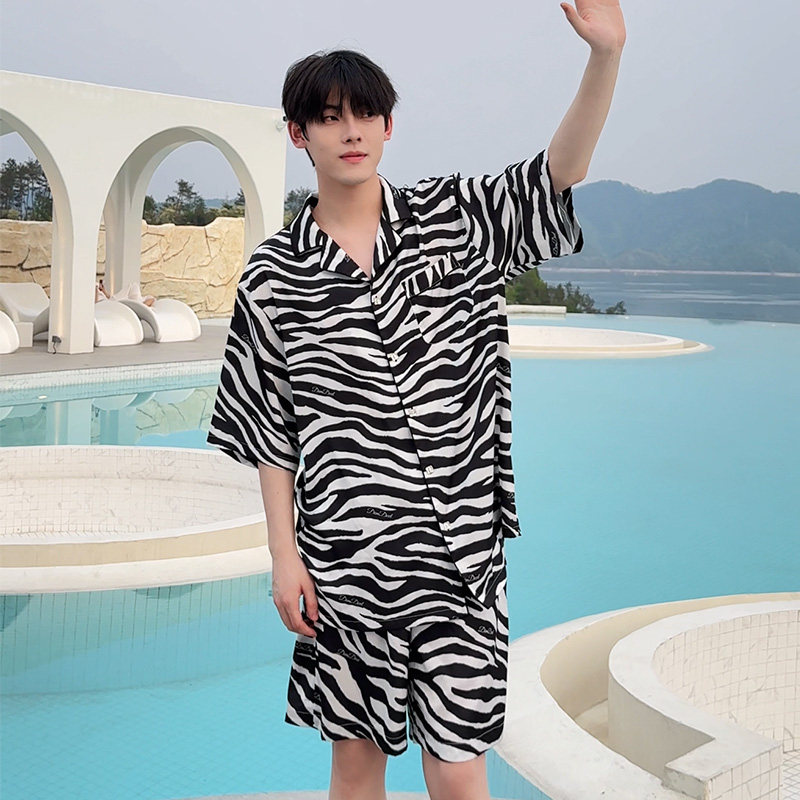 DIMDEVL汀黛26新款睡衣男士斑马纹休闲港风短袖家居服套装