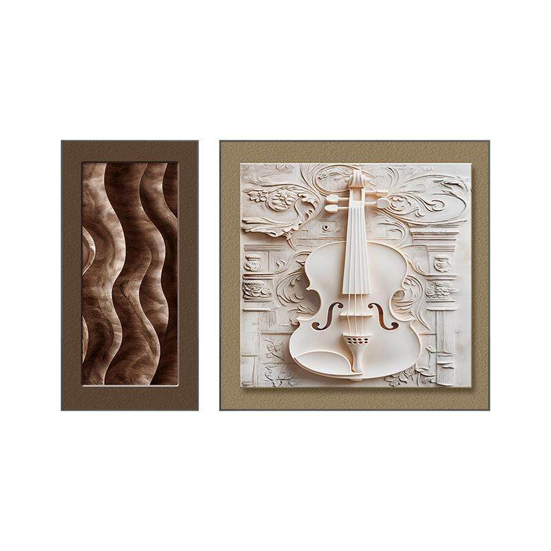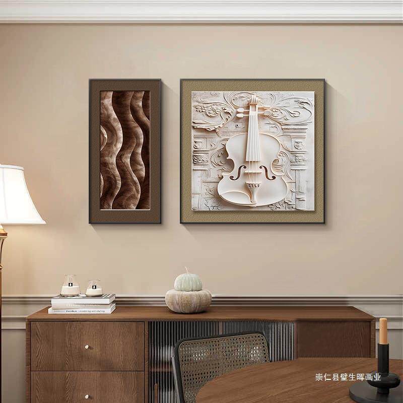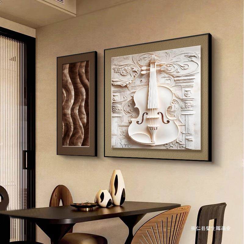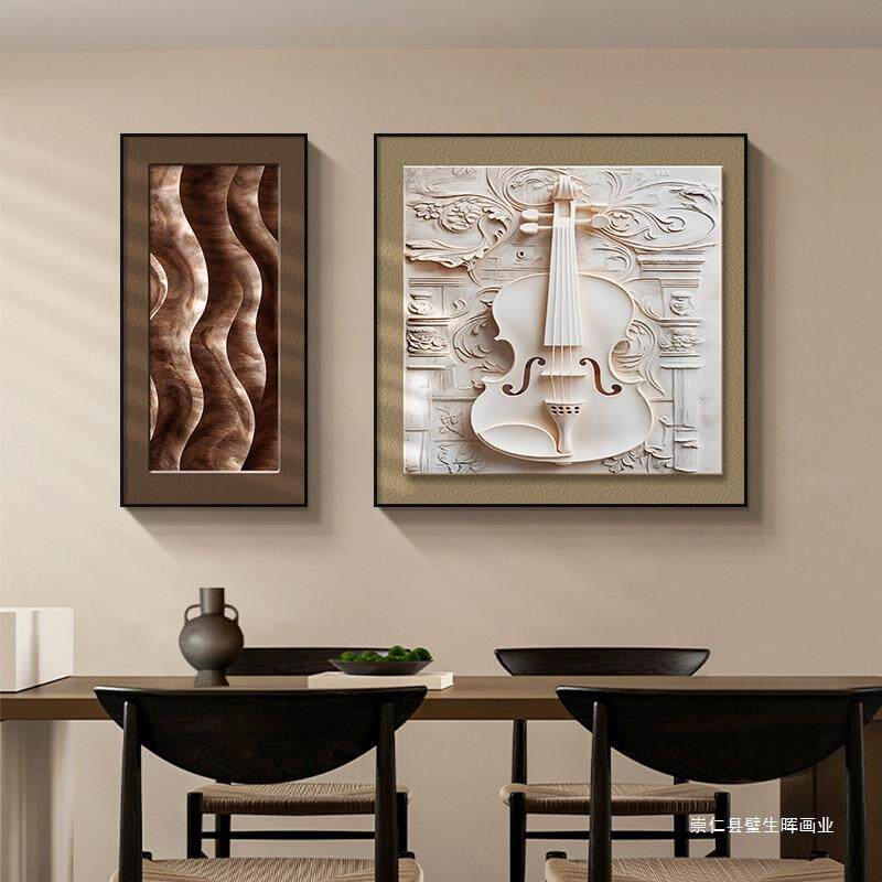 餐厅装饰画双联挂画现代简约肌理感餐桌壁画艺术小提琴饭厅画