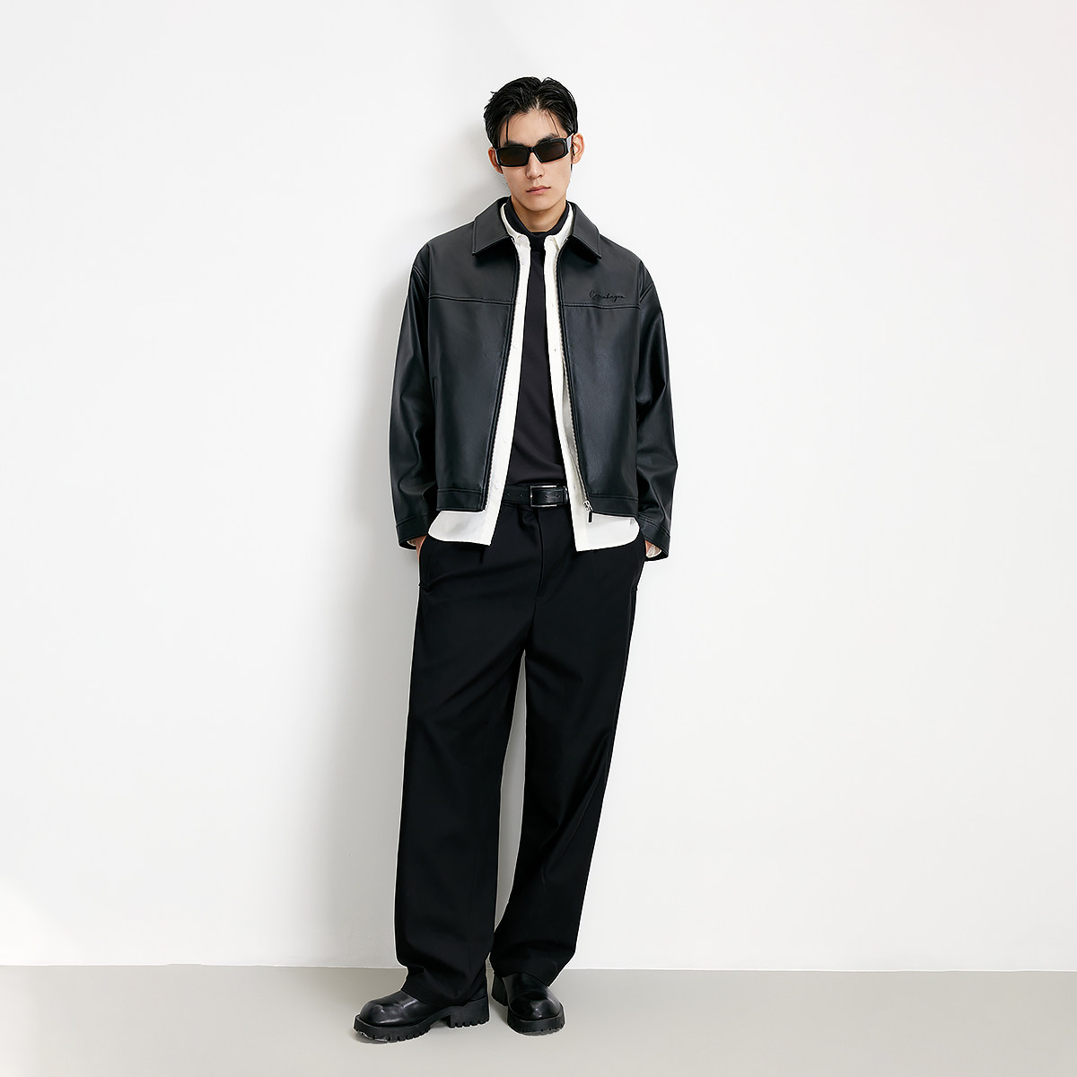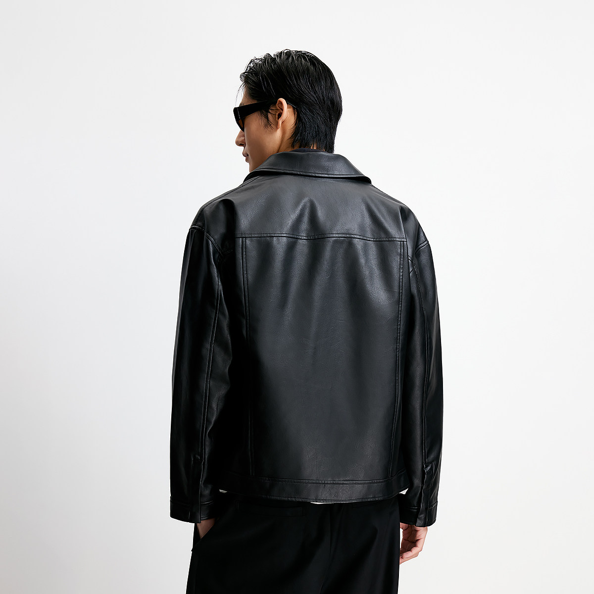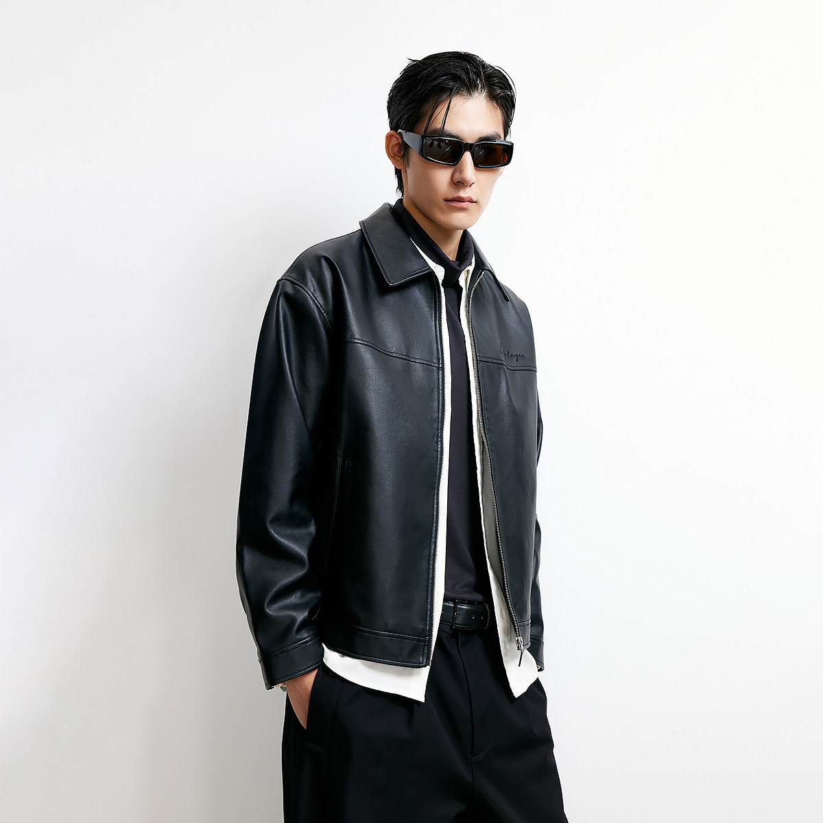 杰克琼斯男装2026年春季新款美式荔枝纹PU皮衣宽松夹克外套男上衣
