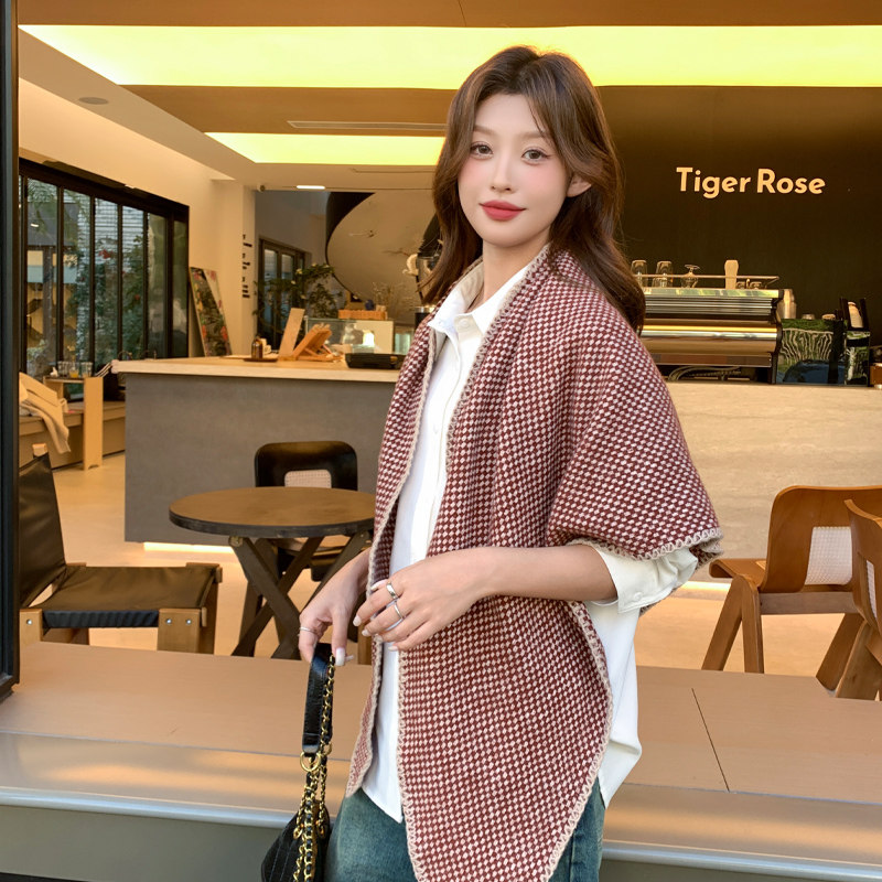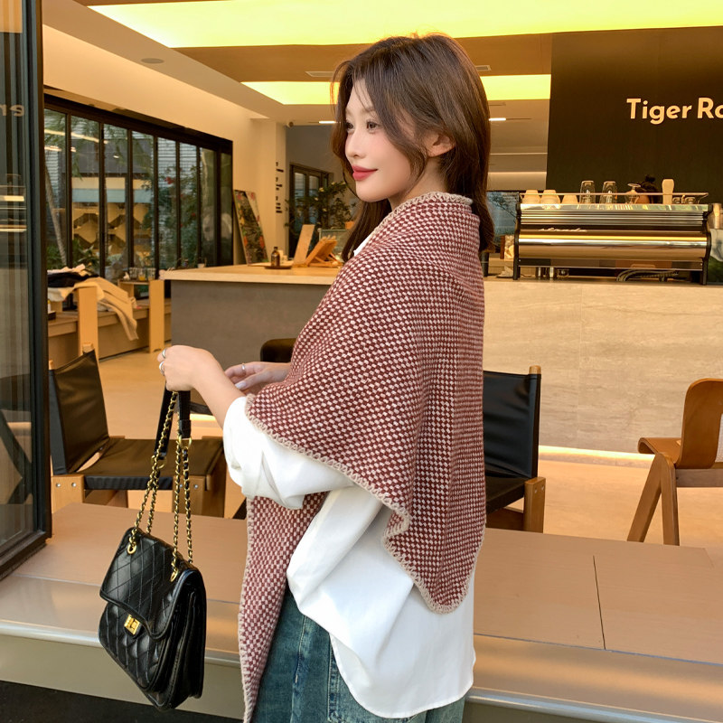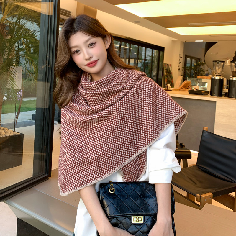百搭大三角显瘦气质针织围巾披肩女秋冬季护颈保暖外搭两用头巾潮