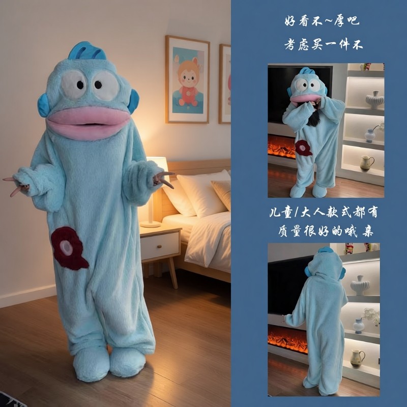 秋冬季加厚可爱丑鱼搞怪连体睡衣男女童珊瑚绒卡通儿童亲子家居服