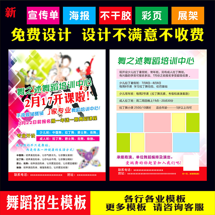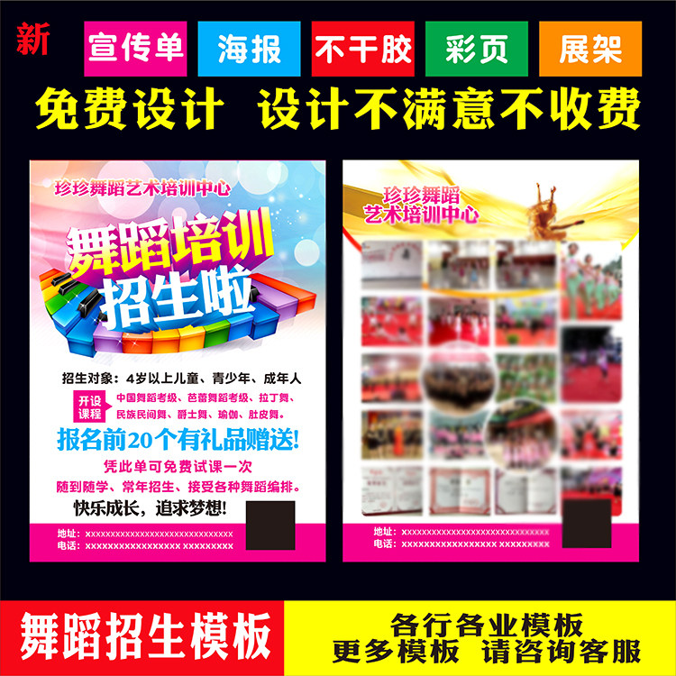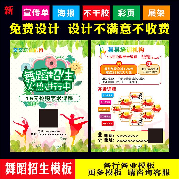 绘画瑜伽少儿舞蹈招生广告宣传单页印刷带胶海报门口展架设计定制