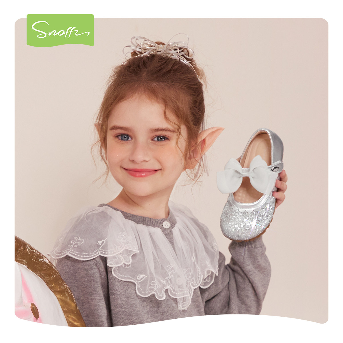 斯纳菲儿童水晶鞋女童皮鞋银色公主鞋2025春秋新款洋气闪亮女孩鞋