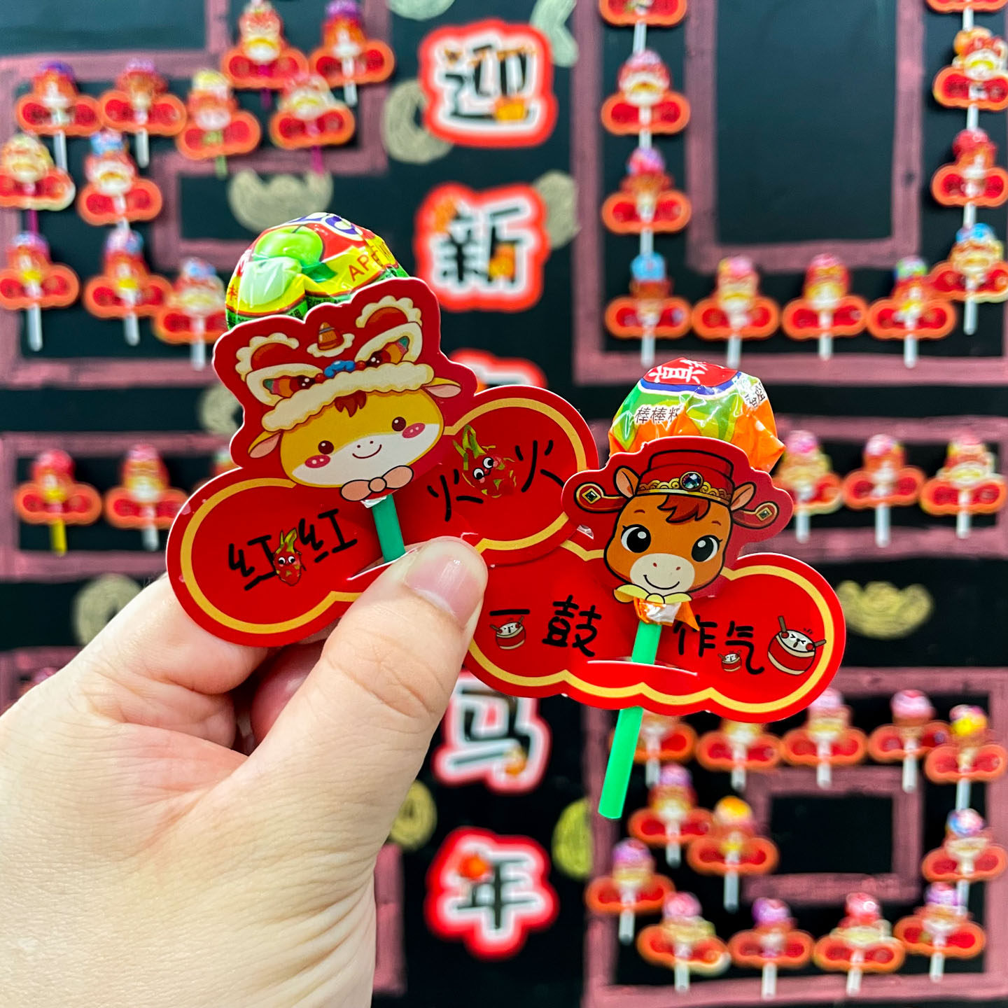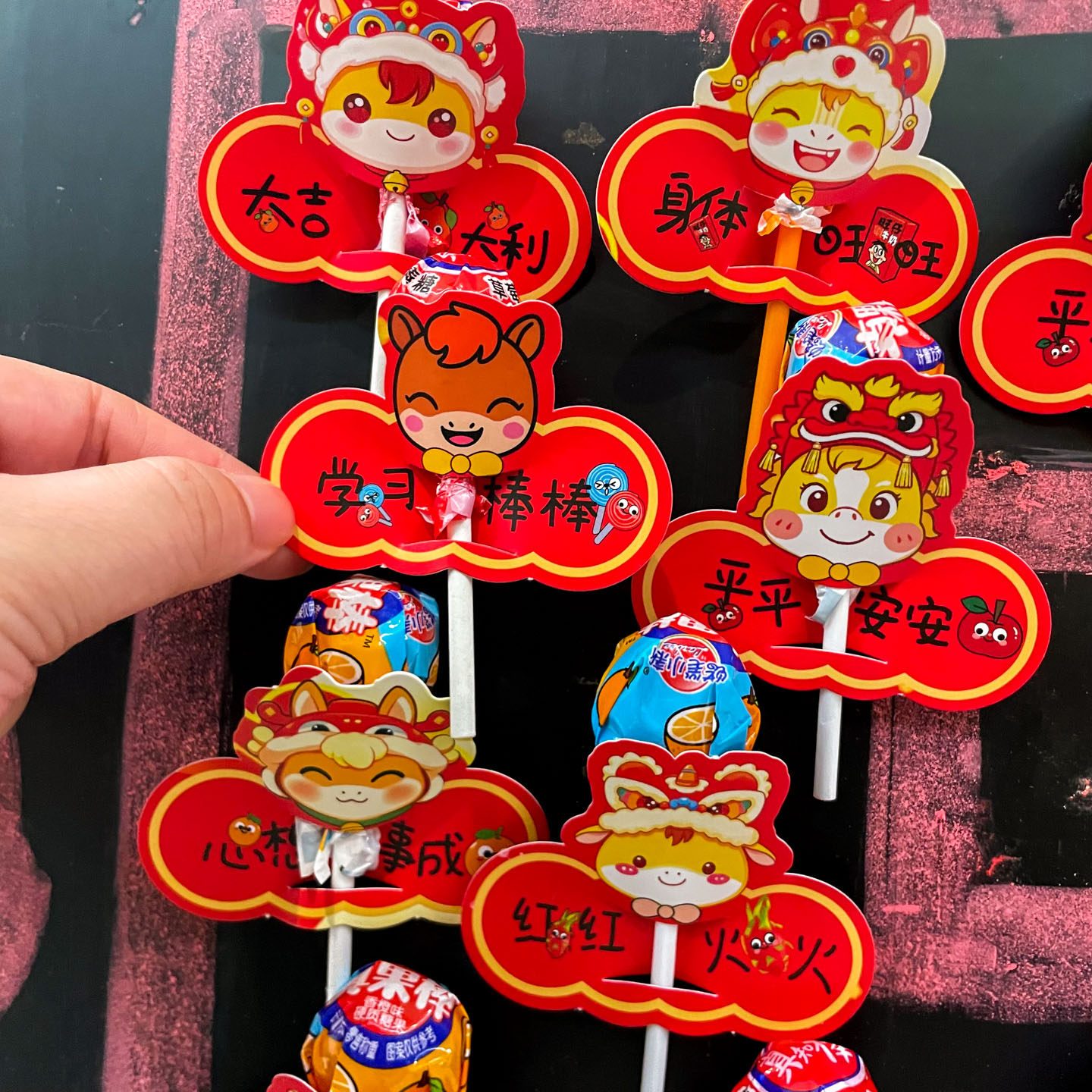 2026马年新年棒棒糖插卡纸创意开学氛围教室布置心愿墙可爱励志祝福语小贺卡奖励送幼儿园学生糖果包装饰卡片