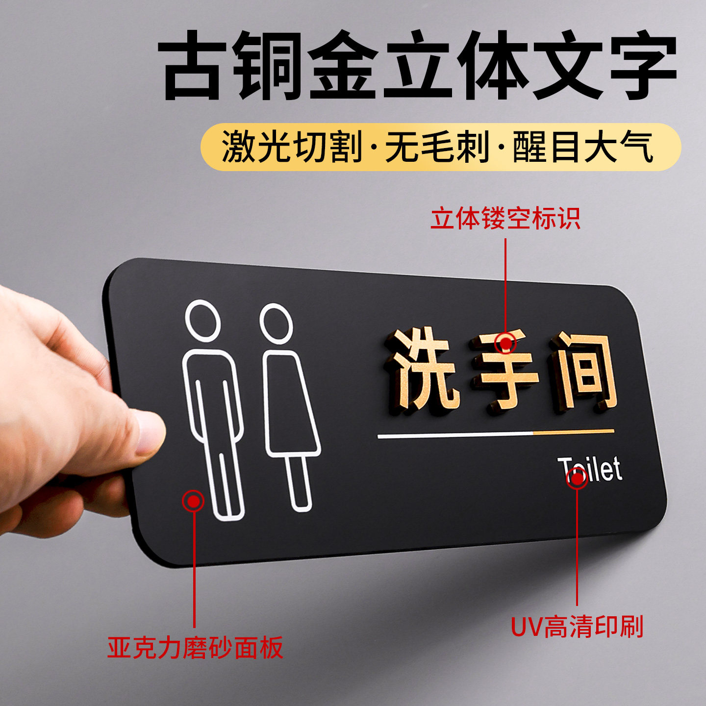 洗手间标识牌男女卫生间标牌定制淋浴更衣房间厕所轻奢风指示牌子女士专用母婴室toilet图标自粘贴纸标志装饰