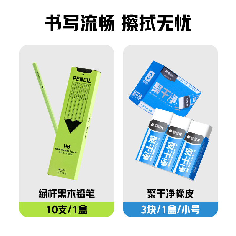 【U先试用】晨光文具黑木铅笔小绿杆聚干净橡皮试用装小学生儿童幼儿园专用高端安全HB
