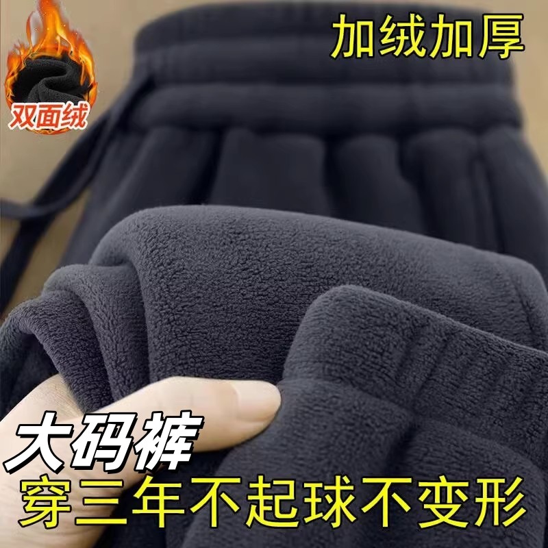 双面摇粒绒裤子男女款加绒加厚宽松大码保暖卫裤运动休闲裤冬季