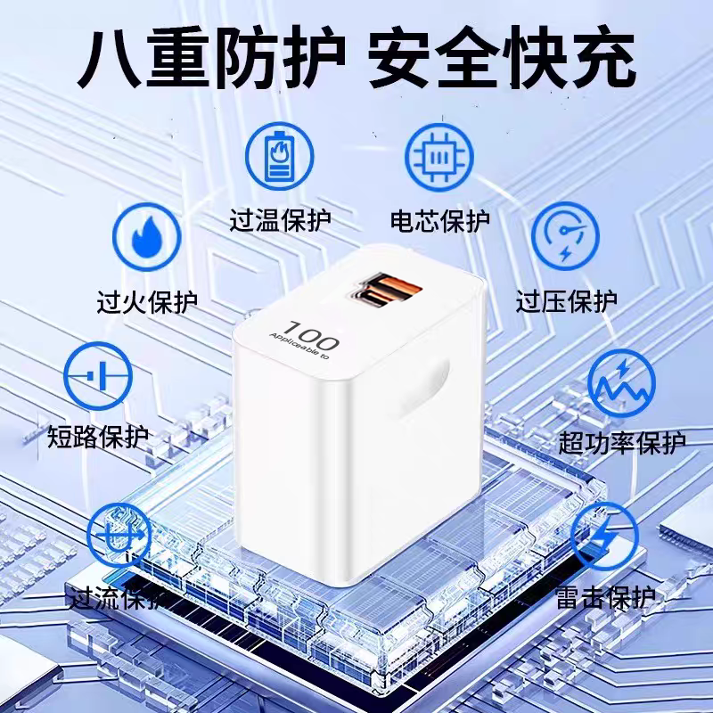 倍思100w充电器三合一线数据线快充充电头一拖三65w多功能多头车载三头充电线USB快充套装typec插头