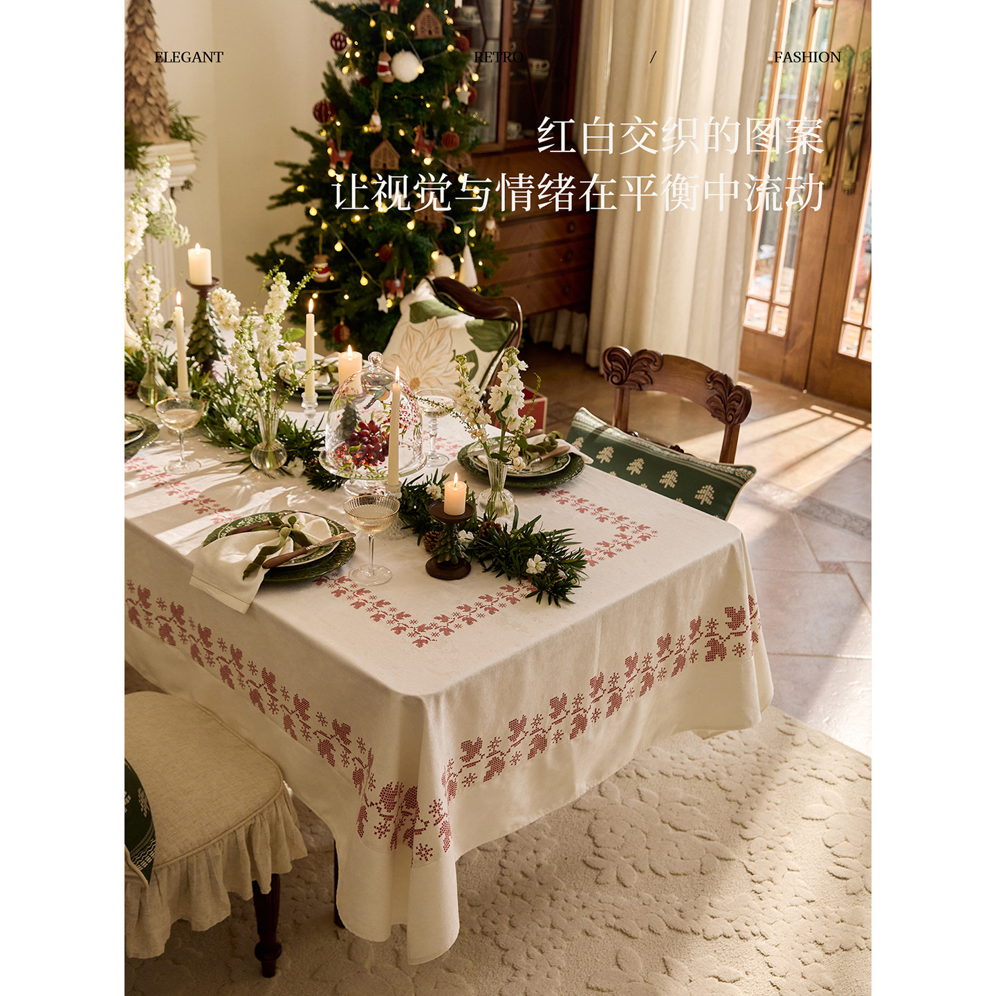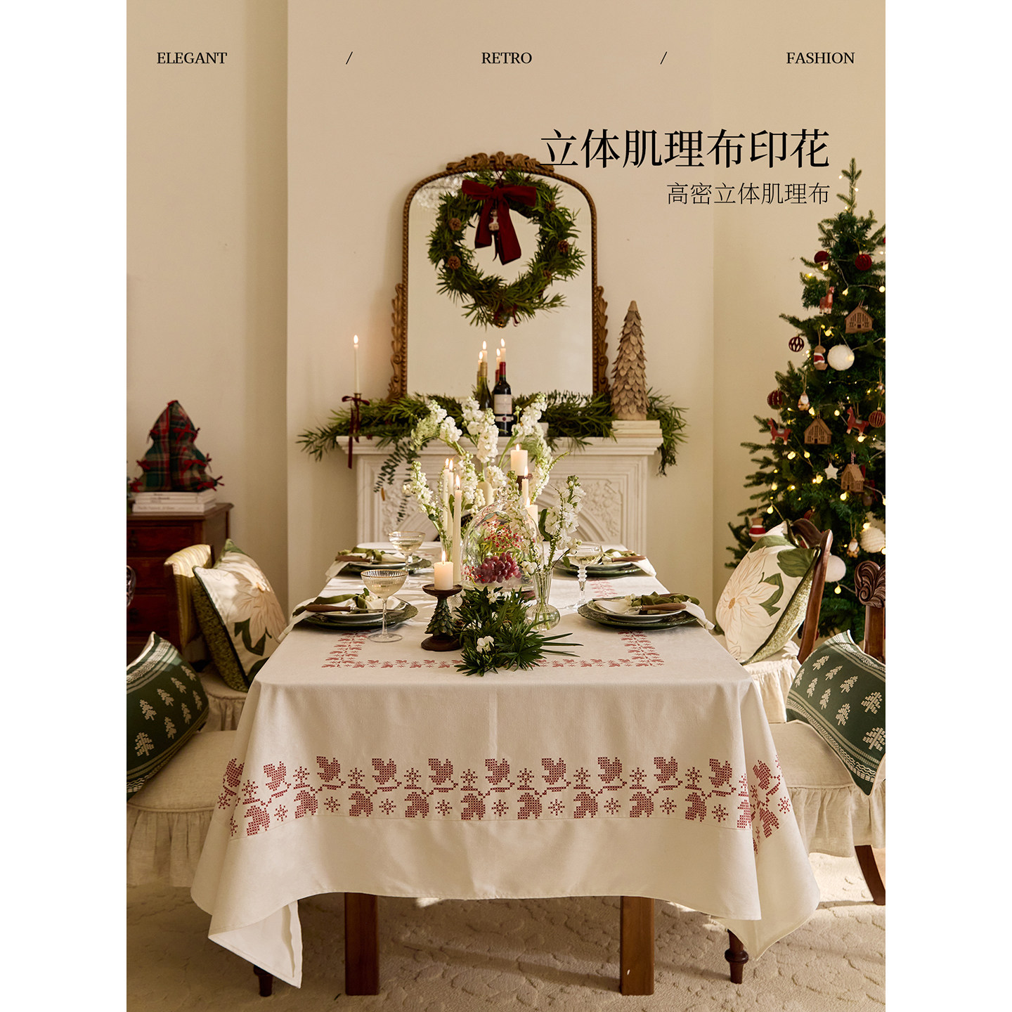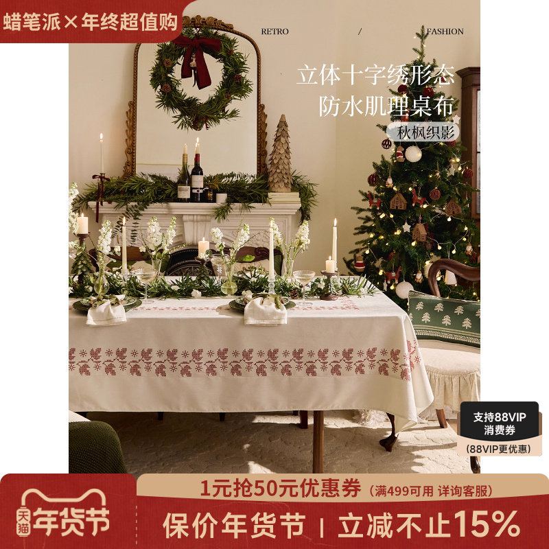 【孤品】蜡笔派秋枫织影桌布简约现代轻奢防水餐桌盖布新年节日
