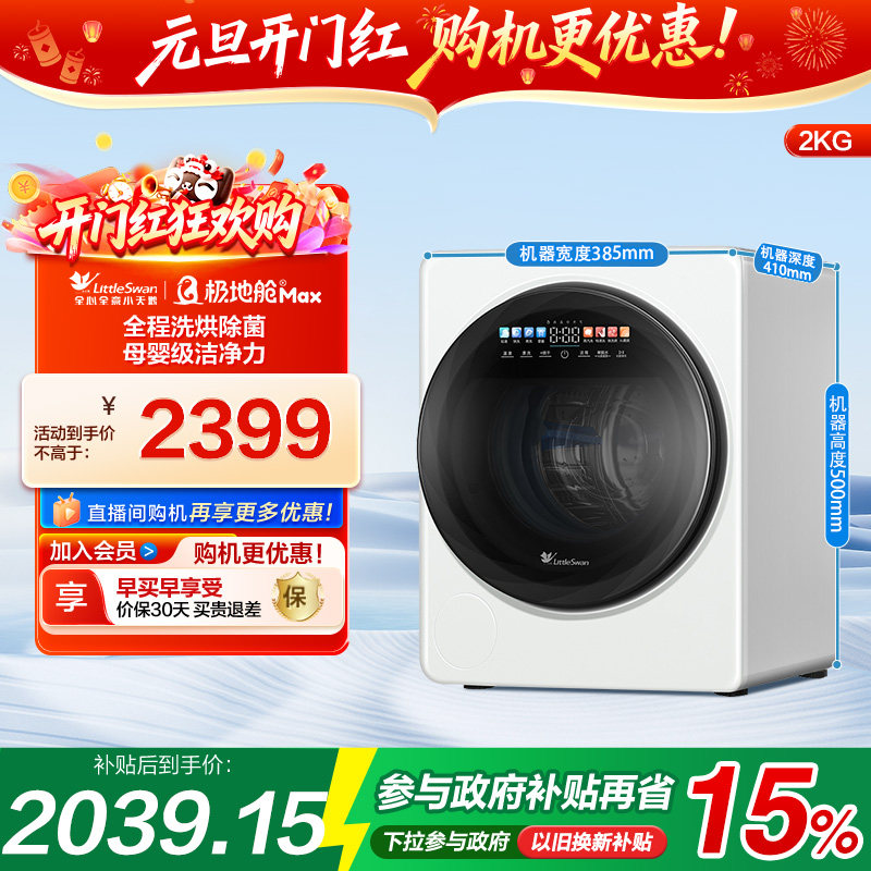 【极地舱MAX】小天鹅2KG迷你全自动洗衣机宝宝婴儿内衣裤洗烘一体