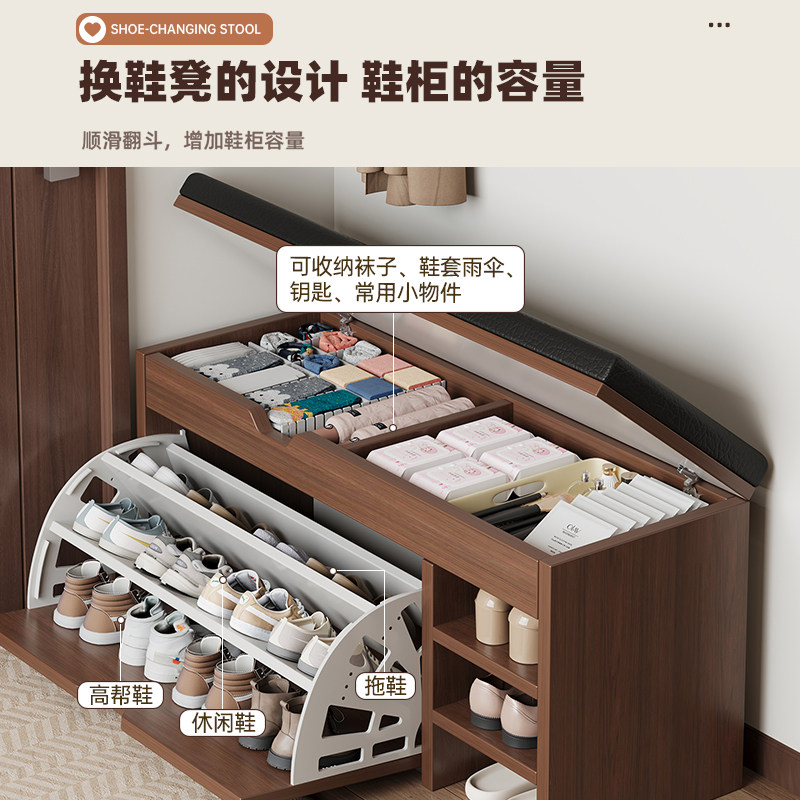 实木入户换鞋凳家用可坐鞋柜坐凳一体鞋架坐垫玄关进门穿鞋凳收纳