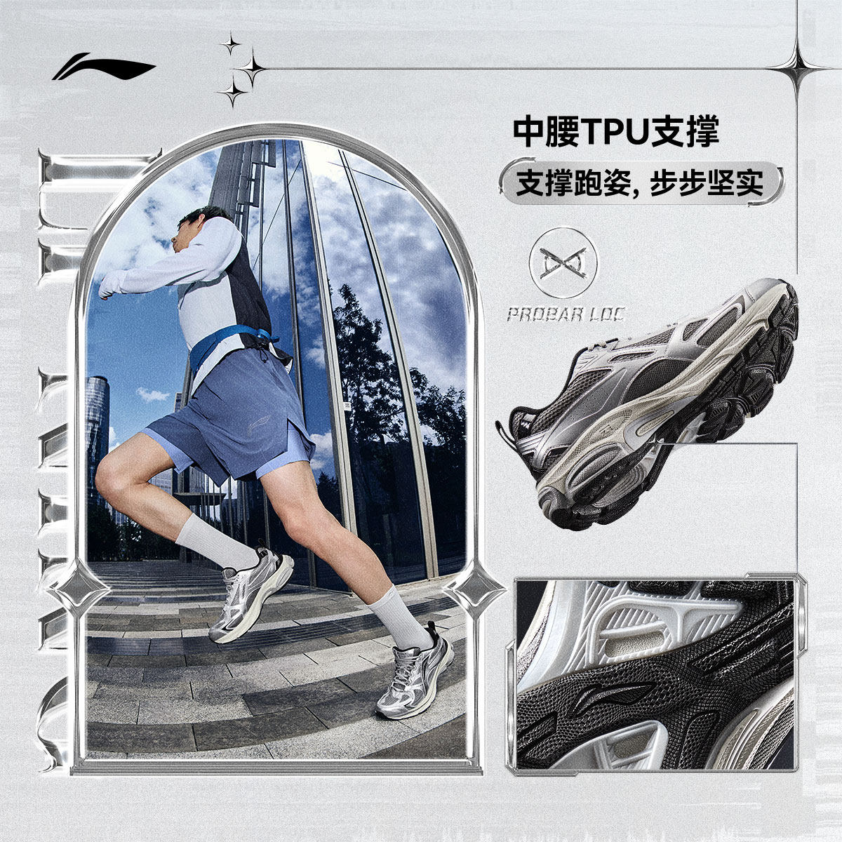 李宁越影Element丨 跑步鞋男支撑保护减震透气网面黑色轻便运动鞋