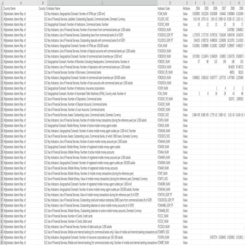 世界各国普惠金融相关指标ATM数量、金融机构数量、商业银行数