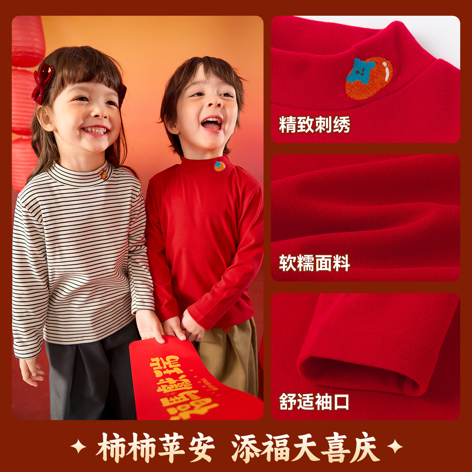 嘟嘟家儿童拜年服红色打底衫男童长袖T恤宝宝女童冬季上衣童冬装
