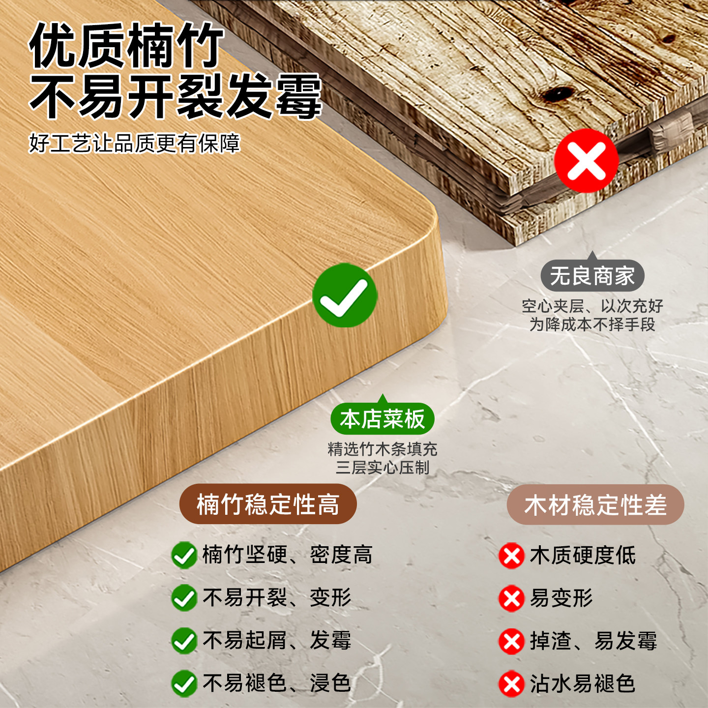 百悍楠竹菜板家用防霉抗菌砧板切菜板食品级厨房专用实木案板菜墩