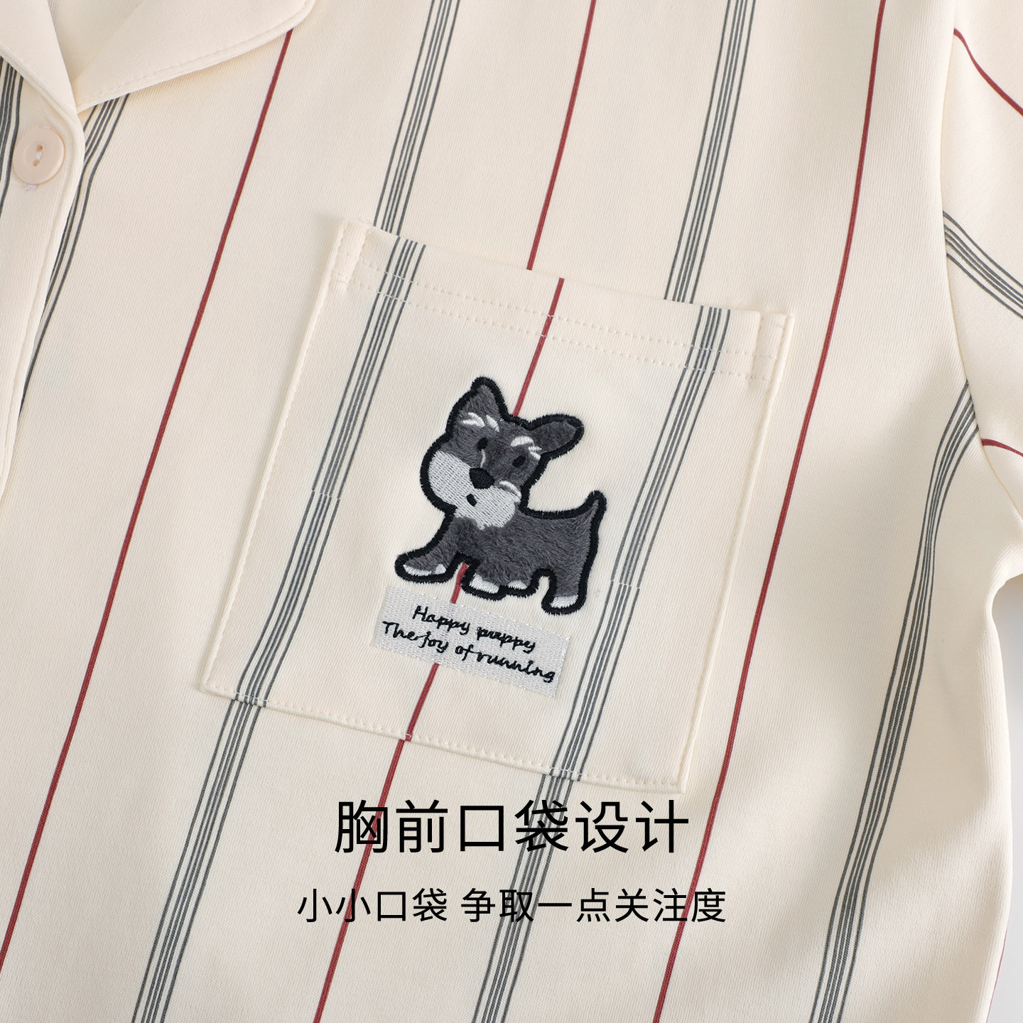 末里末【带胸垫】纯棉夏季情侣睡衣女条纹小狗可爱翻领透气家居服
