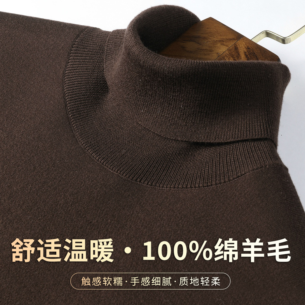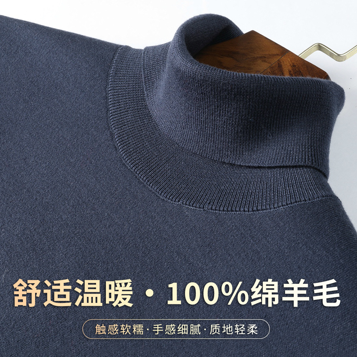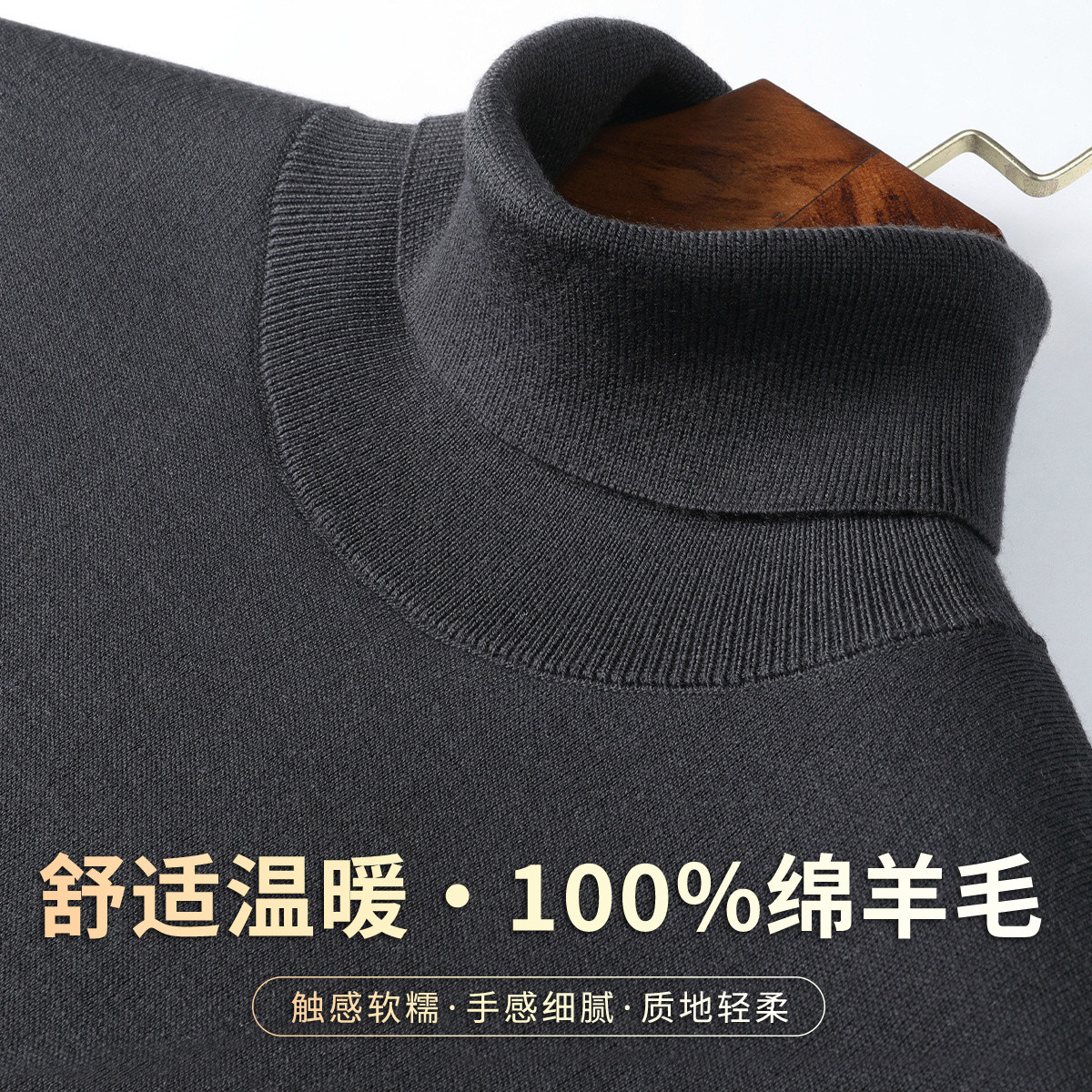 雪中飞高领温暖【100绵羊毛】春新品纯色简约男士休闲长袖羊毛衫W
