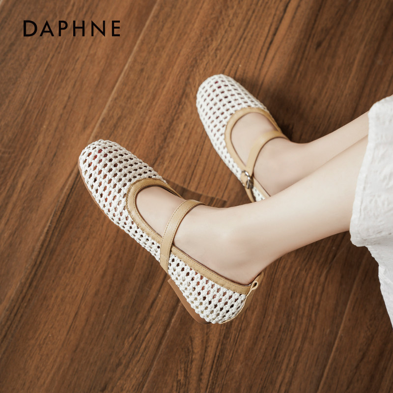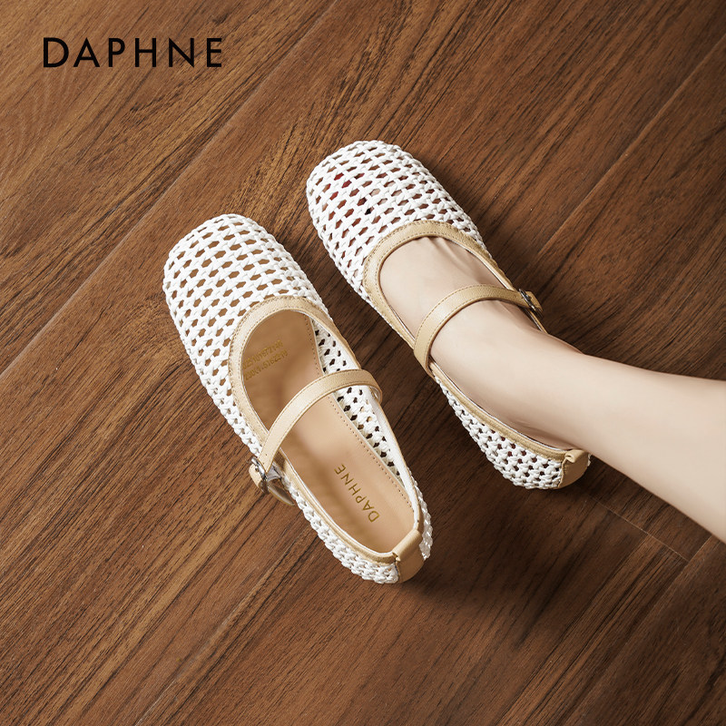 达芙妮单鞋女夏季2026新款网面编织浅口玛丽珍女鞋平底镂空凉鞋女