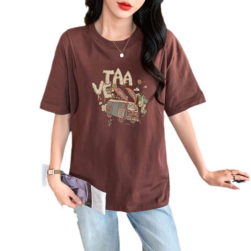 哺乳上衣辣妈款外出夏季侧翻喂奶衣服短袖产后孕妇夏装浦乳期潮妈