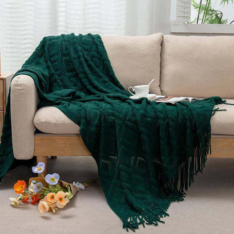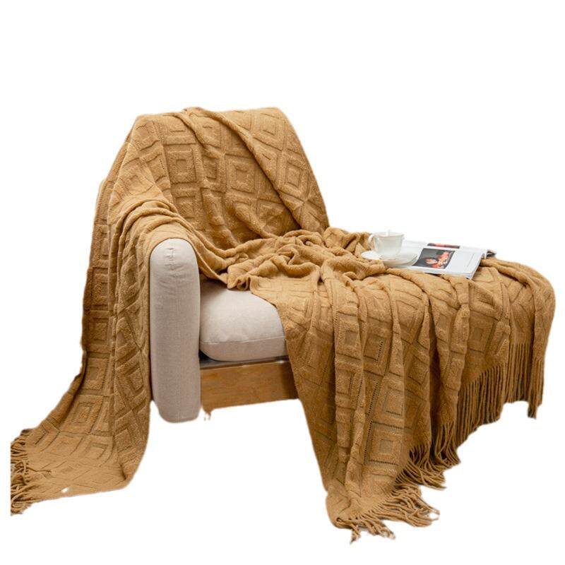 39001毛圈菱形休闲毯四季针织线毯民宿床位搭毯酒店床毯几何毯子