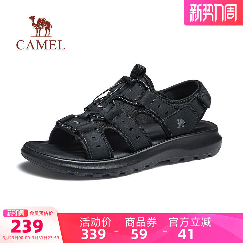 骆驼男鞋2026夏季新款复古时尚舒适牛皮沙滩鞋男士百搭休闲凉鞋
