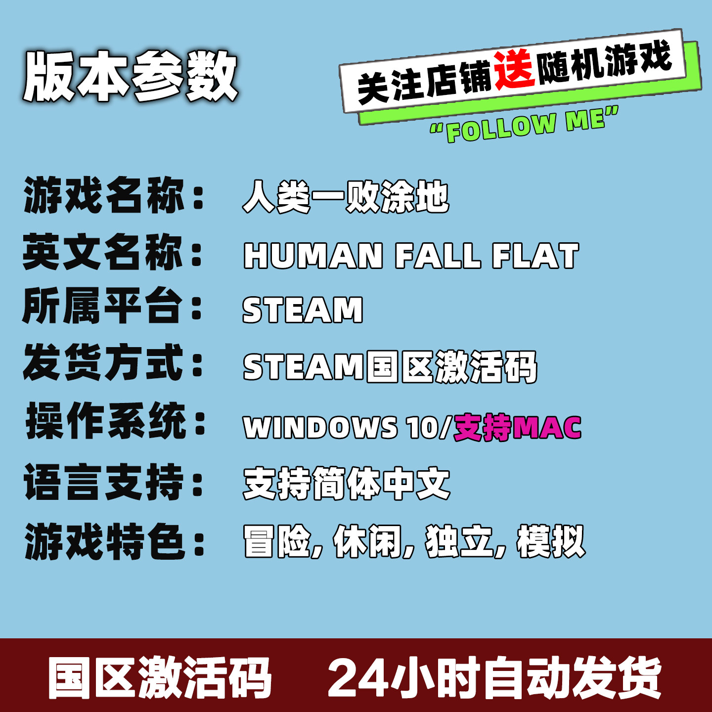 steam正版游戏 人类一败涂地 Human Fall Flat 激活码 现货秒发