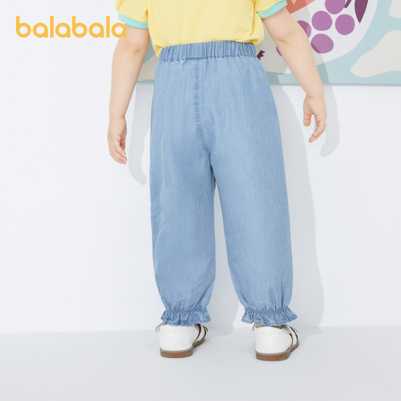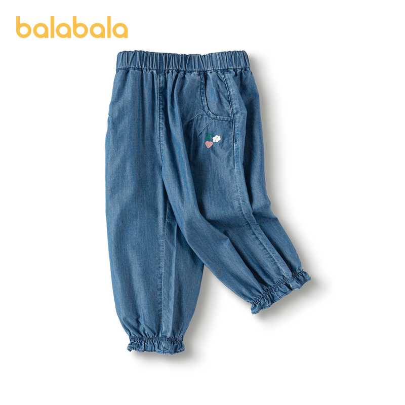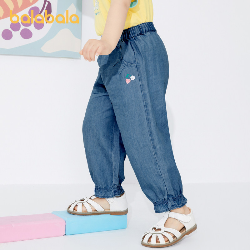 巴拉巴拉童装儿童牛仔裤女童裤子夏季薄款长裤防蚊花苞裤透气复古