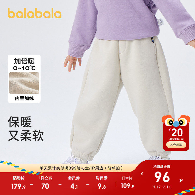 巴拉巴拉童装儿童裤子秋季冬装男童女童加绒加厚宝宝长裤洋气保暖