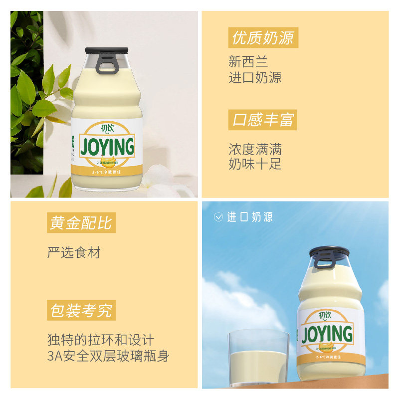 初饮香蕉草莓味牛奶饮品230g*6瓶含乳饮料玻璃瓶学生早餐奶甜牛奶