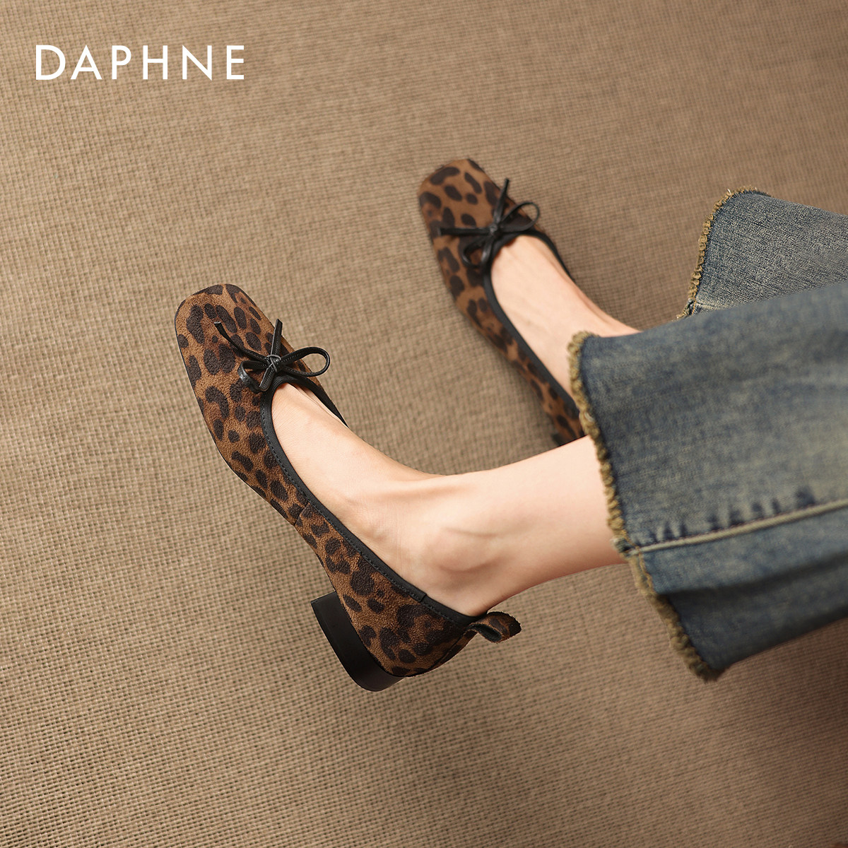 达芙妮豹纹平底单鞋女2026新款春季方头玛丽珍鞋粗跟配裙子女鞋子