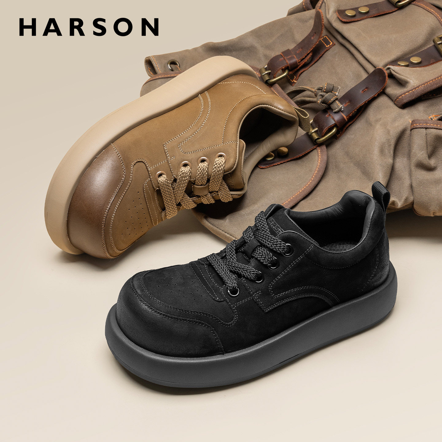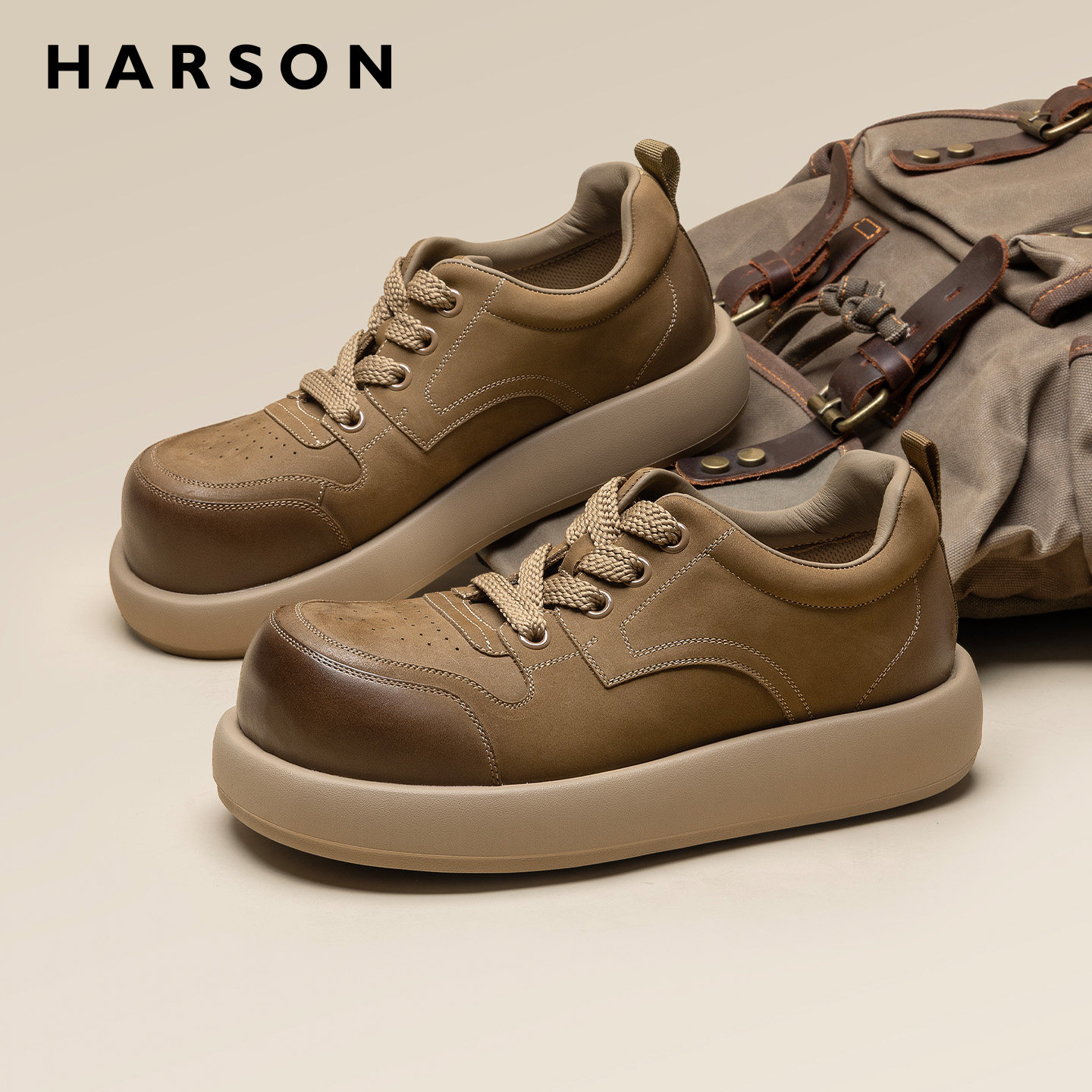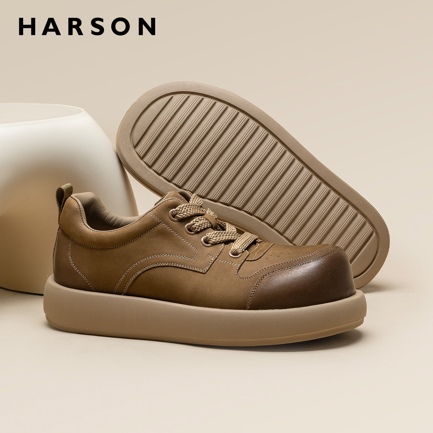 哈森男鞋春季新款大头宽脚皮鞋男士运动德比鞋厚底休闲低帮工装鞋
