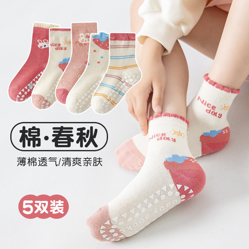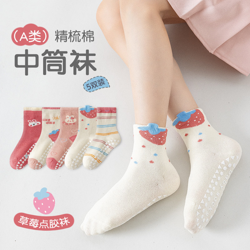儿童宝宝地板袜子婴儿a类女童男秋冬棉袜室内防滑隔凉中筒学步袜