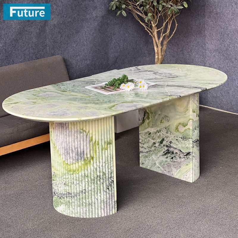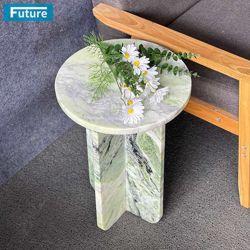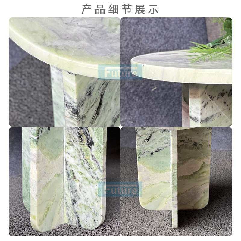 天然大理石绿色边几 简约轻奢自然角桌餐桌防水酒店家具来图制作