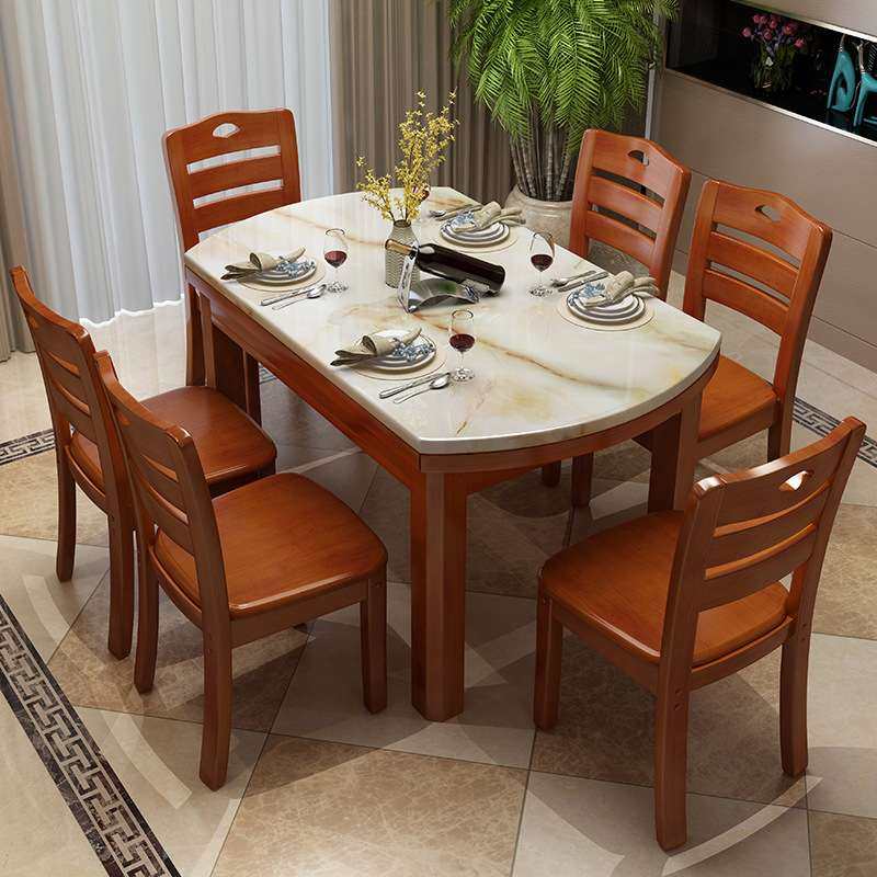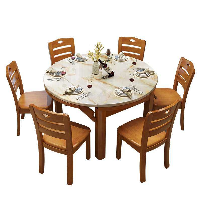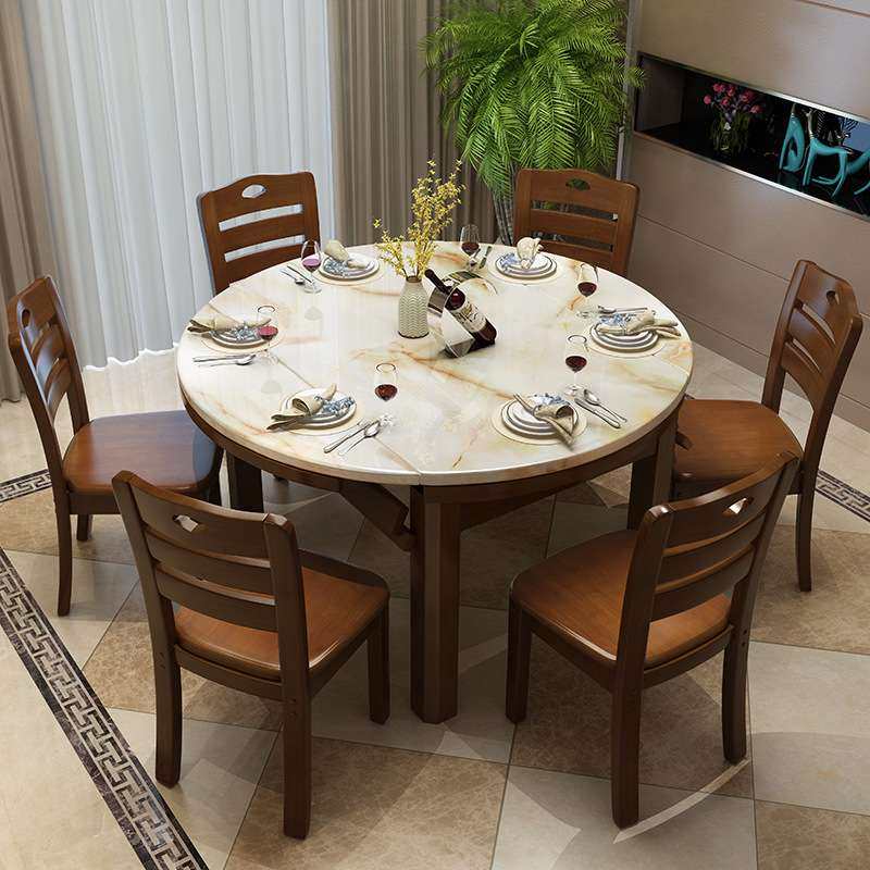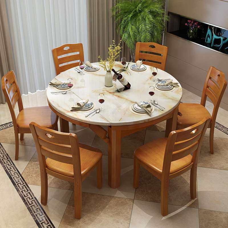 现代简约大理石圆桌伸缩折叠饭桌实木餐桌椅组合餐厅家用吃饭桌子