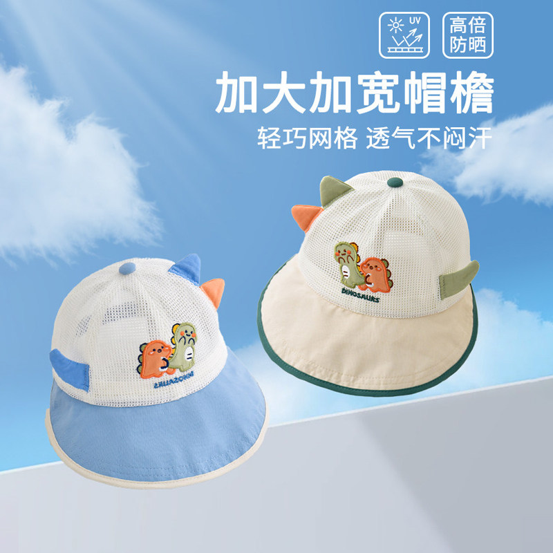 儿童防晒帽男女孩宝宝夏季透气薄款大帽檐鸭舌帽网眼太阳帽遮阳