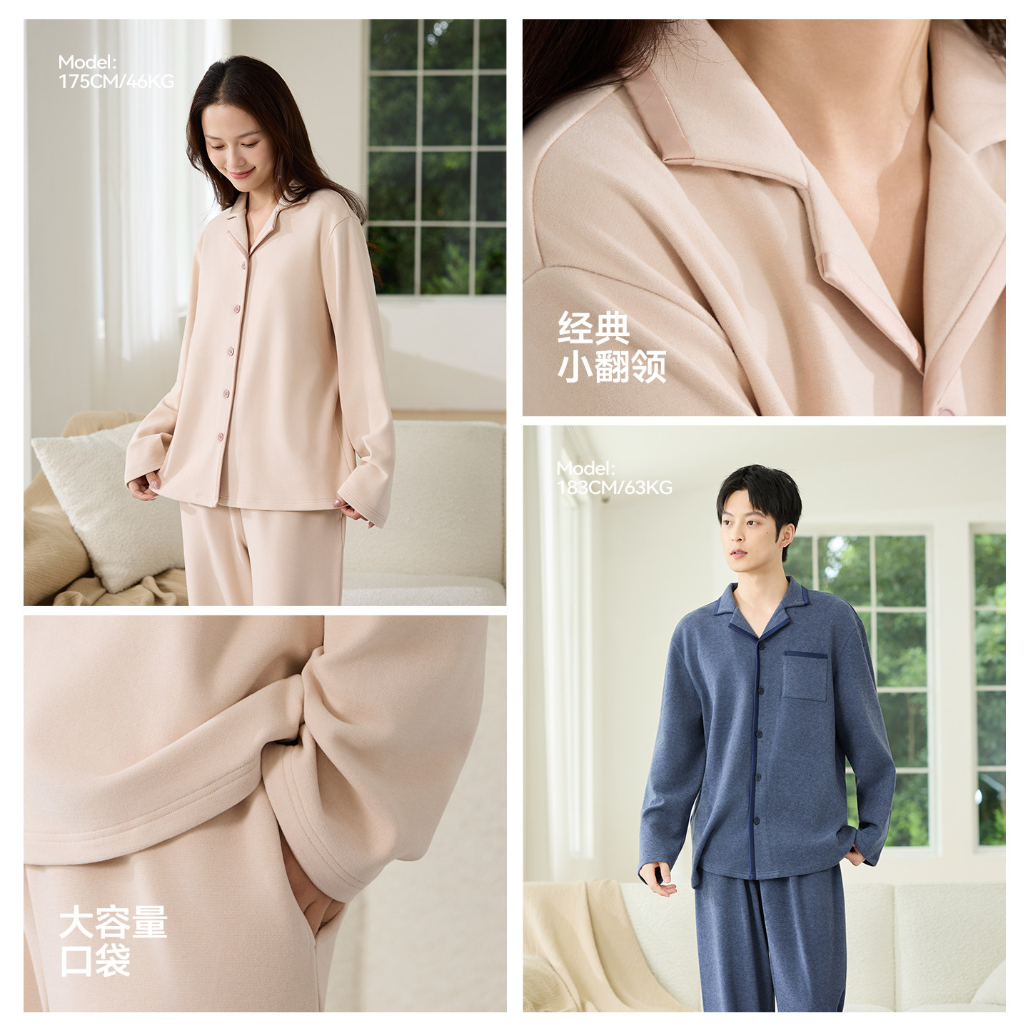 安比斯情侣睡衣舒适纯棉秋季女长袖男女同款休闲家居服套装可出门