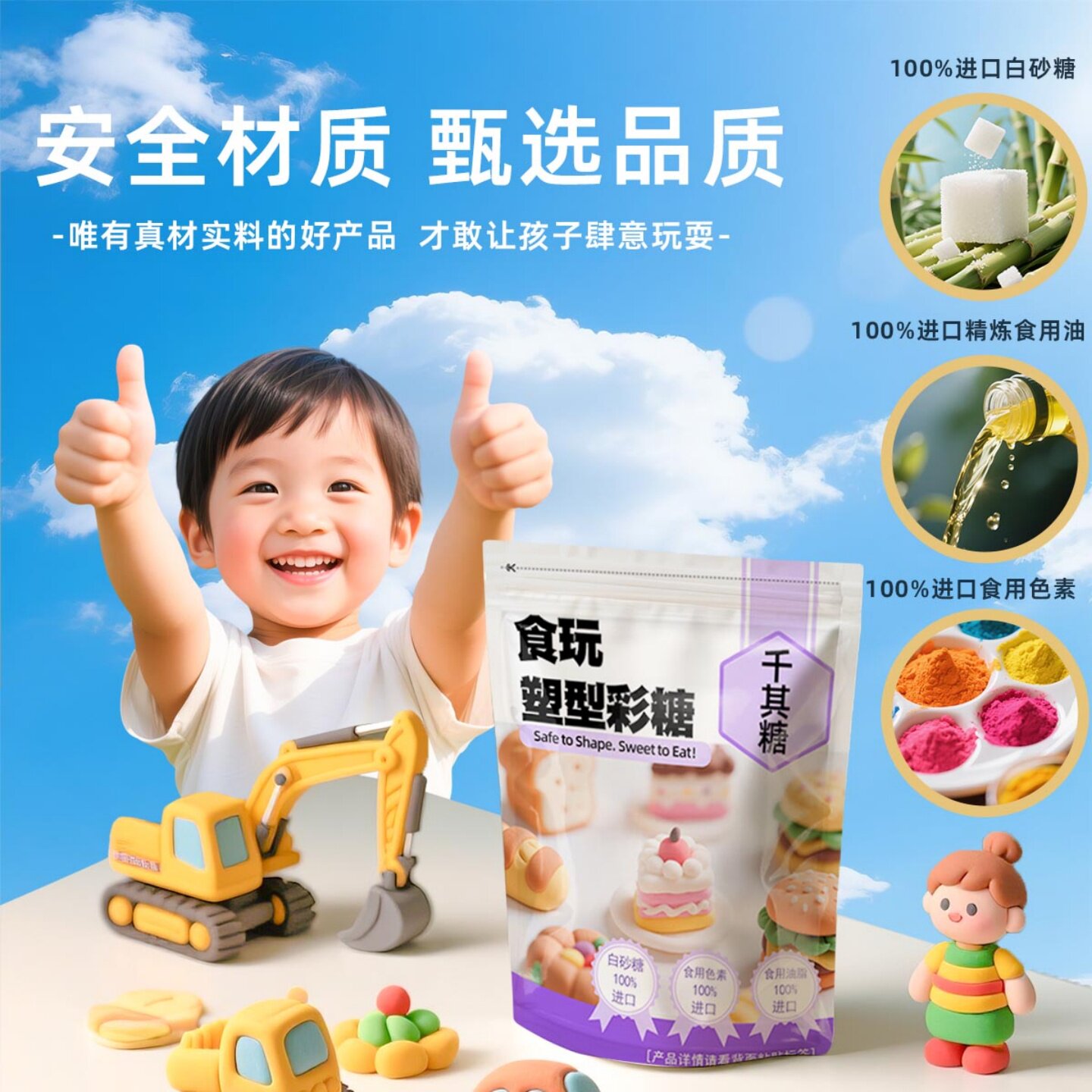 千其糖橡皮泥儿童DIY手工幼儿园玩具超轻粘土彩泥可食用不怕误食