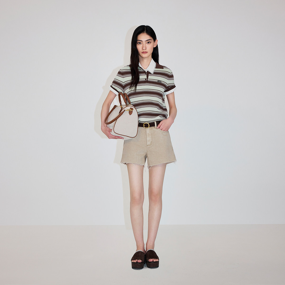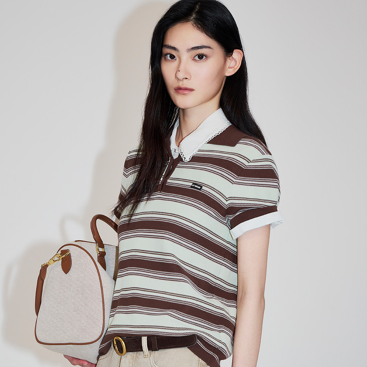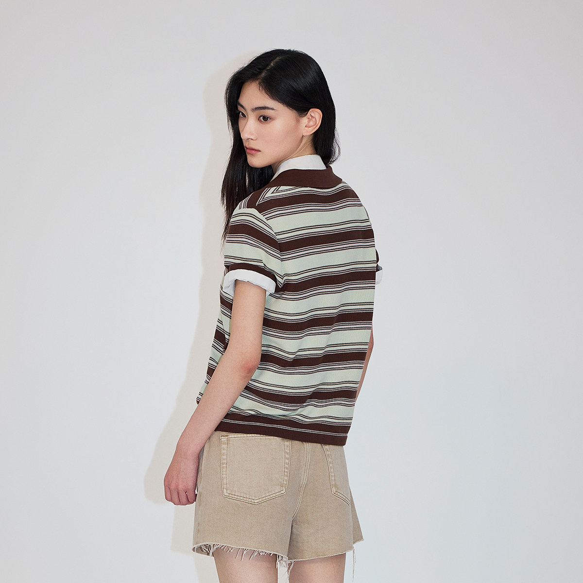 【新品】OCHIRLY欧时力 针织衫2026春夏100%新疆棉条纹polo领短袖