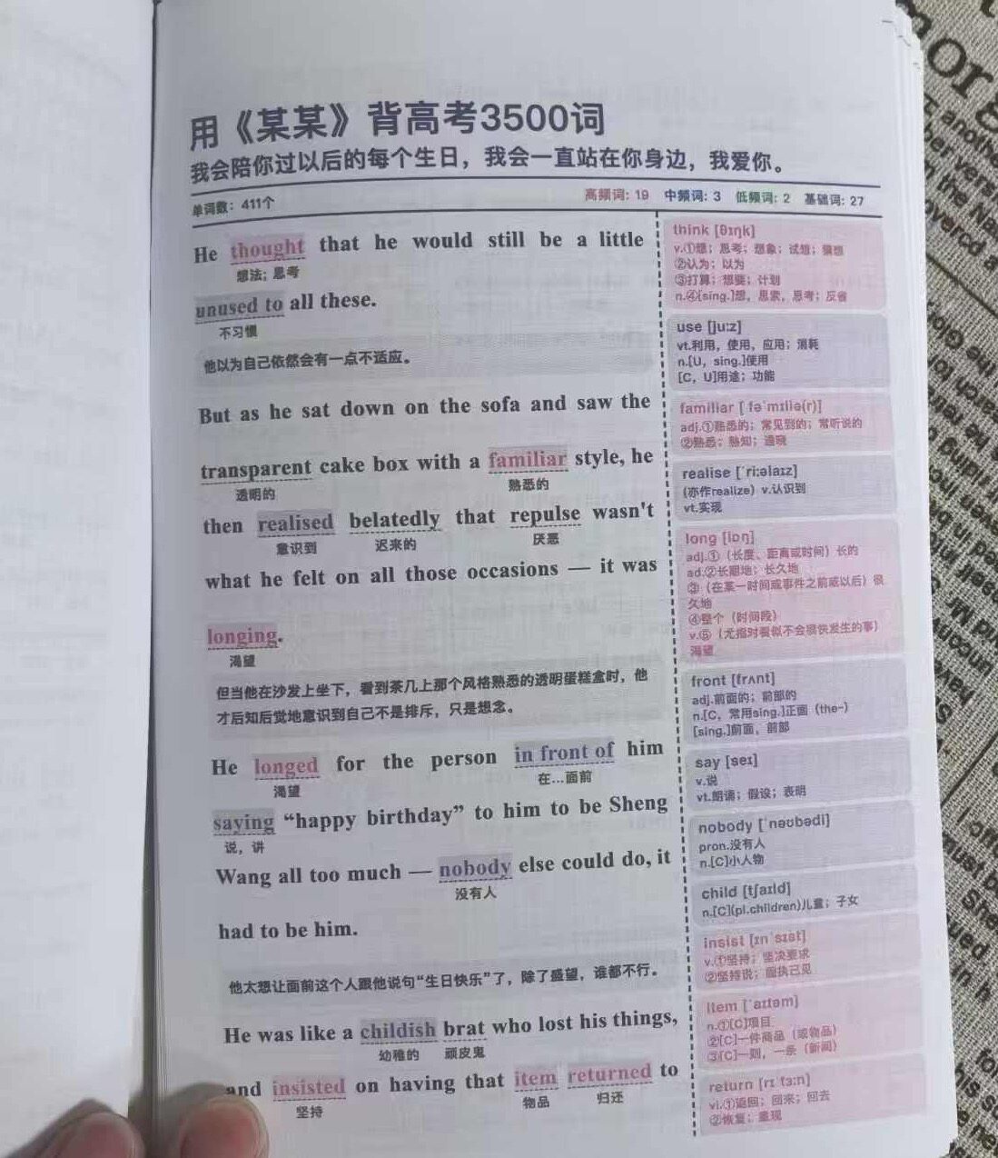 新款《某某》3500单词看小说背单词圣诞礼物闺蜜对象学习彩页现货