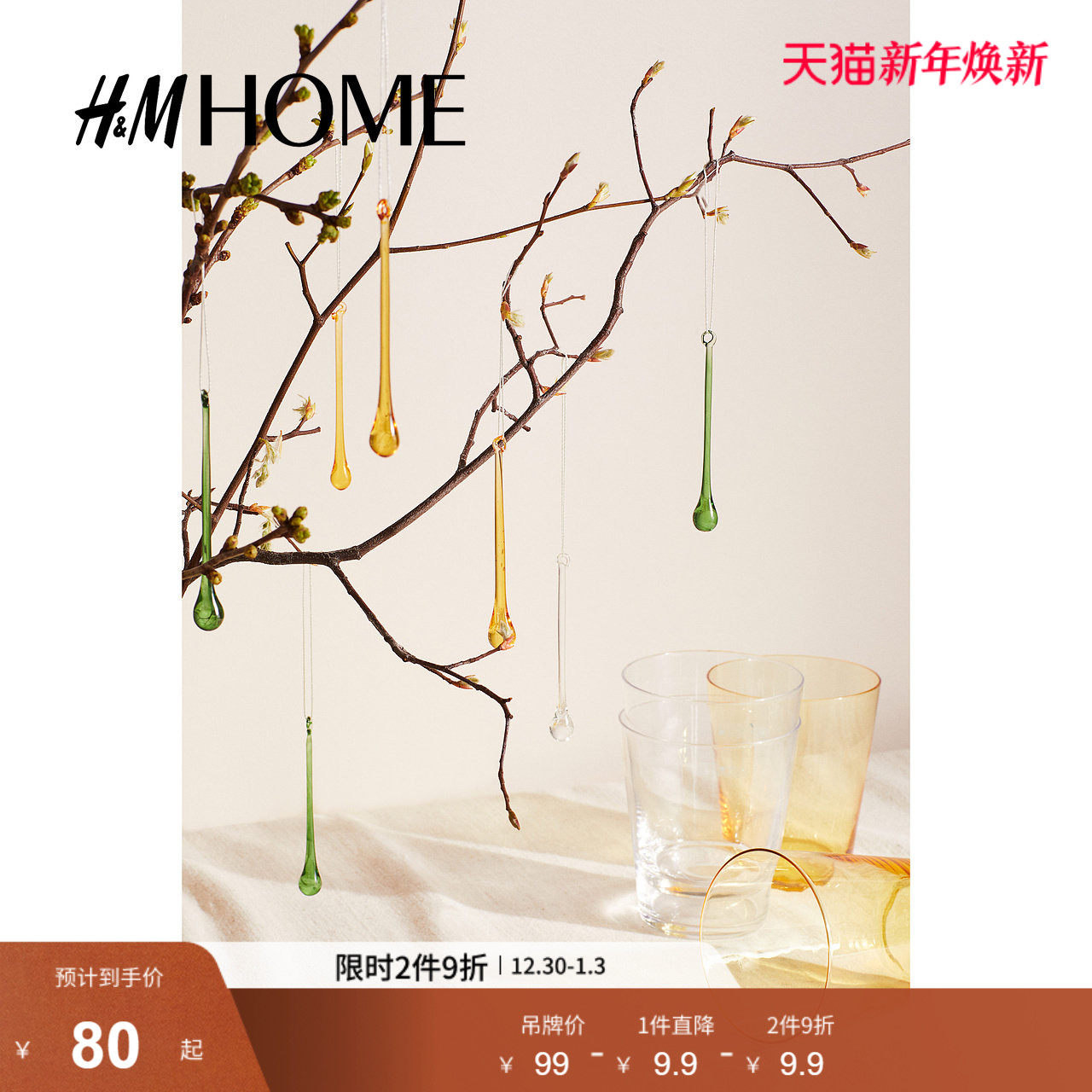 HM HOME家居饰品壁饰6件装圣诞玻璃复活节饰品挂饰1169696