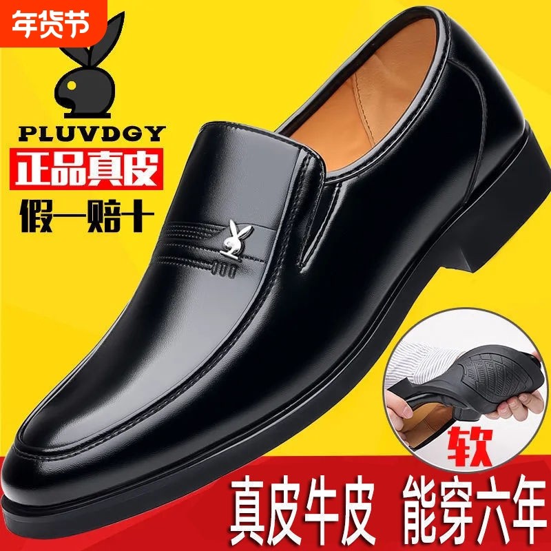 男士皮鞋男款真皮2025新款商务正装潮流黑色软底透气百搭休闲鞋子